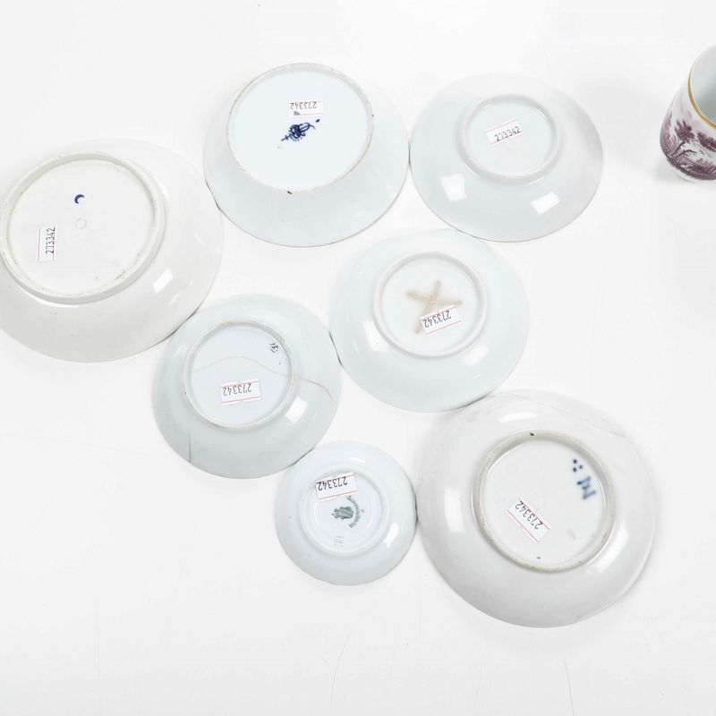 Porcellana. Conservazione: discreta; due piattini con rotture o felature.