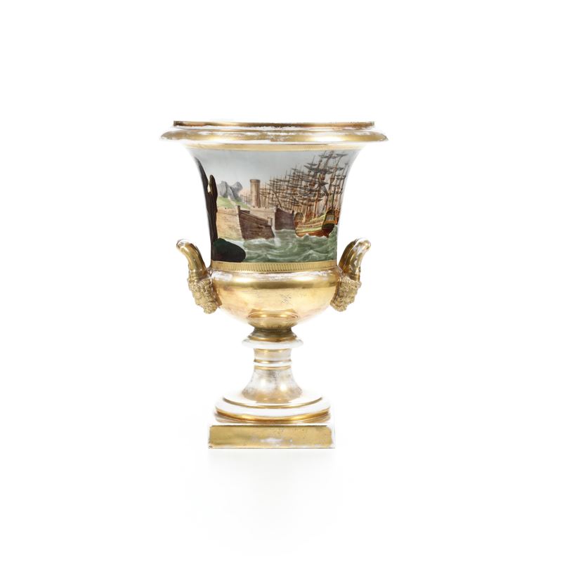 Porcellana. Marca: assente. Altezza cm 33. Conservazione: usure all'oro