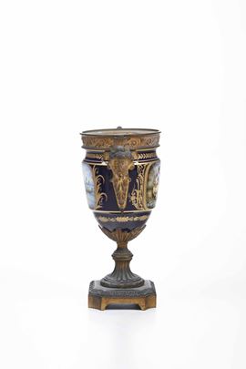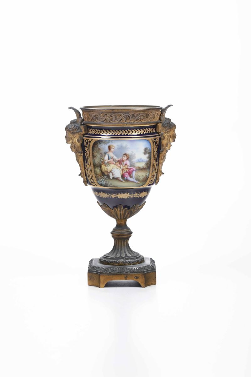 Porcellana e bronzo dorato. Marca: assente o invisibile. Altezza cm 25,8. Conservazione: ottima.