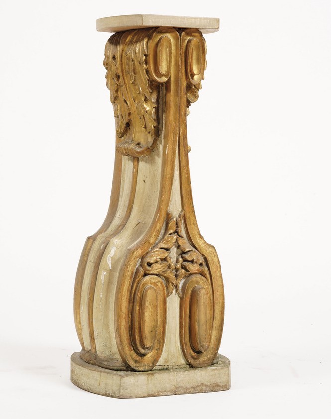Base in legno intagliato, dorato e dipinto. XIX secolo
