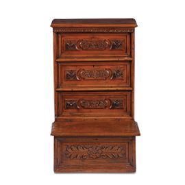 Inginocchiatoio in noce intagliato. XVIII secolo