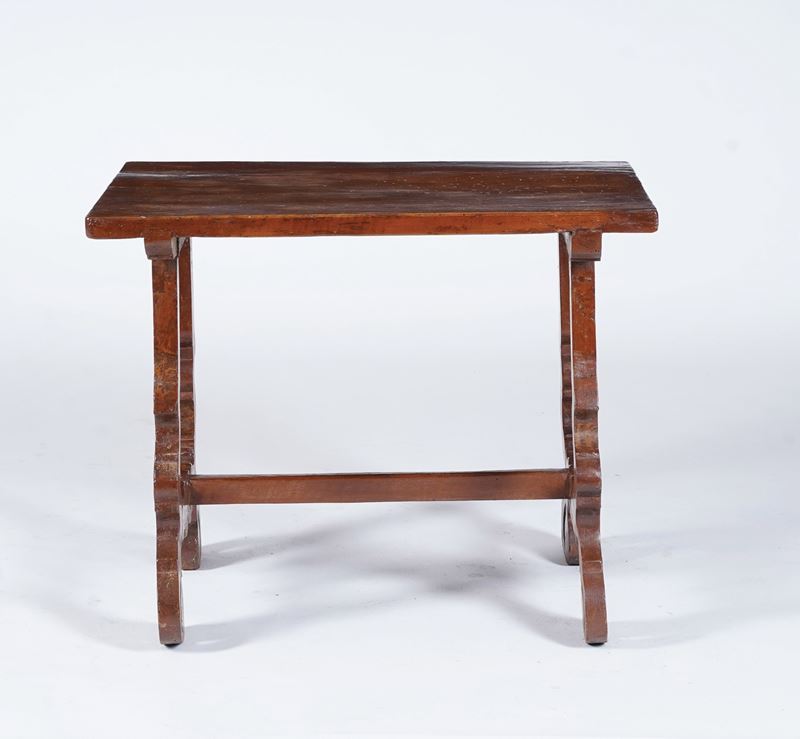 Tavolino in noce con gambe a lira. XVII-XVIII secolo