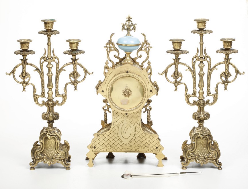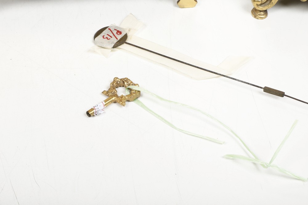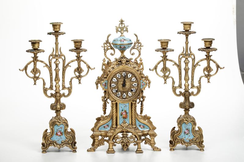 smalti dipinti con motivi floreali, quadrante in ottone con numeri in smalto inseriti con numerazione romana