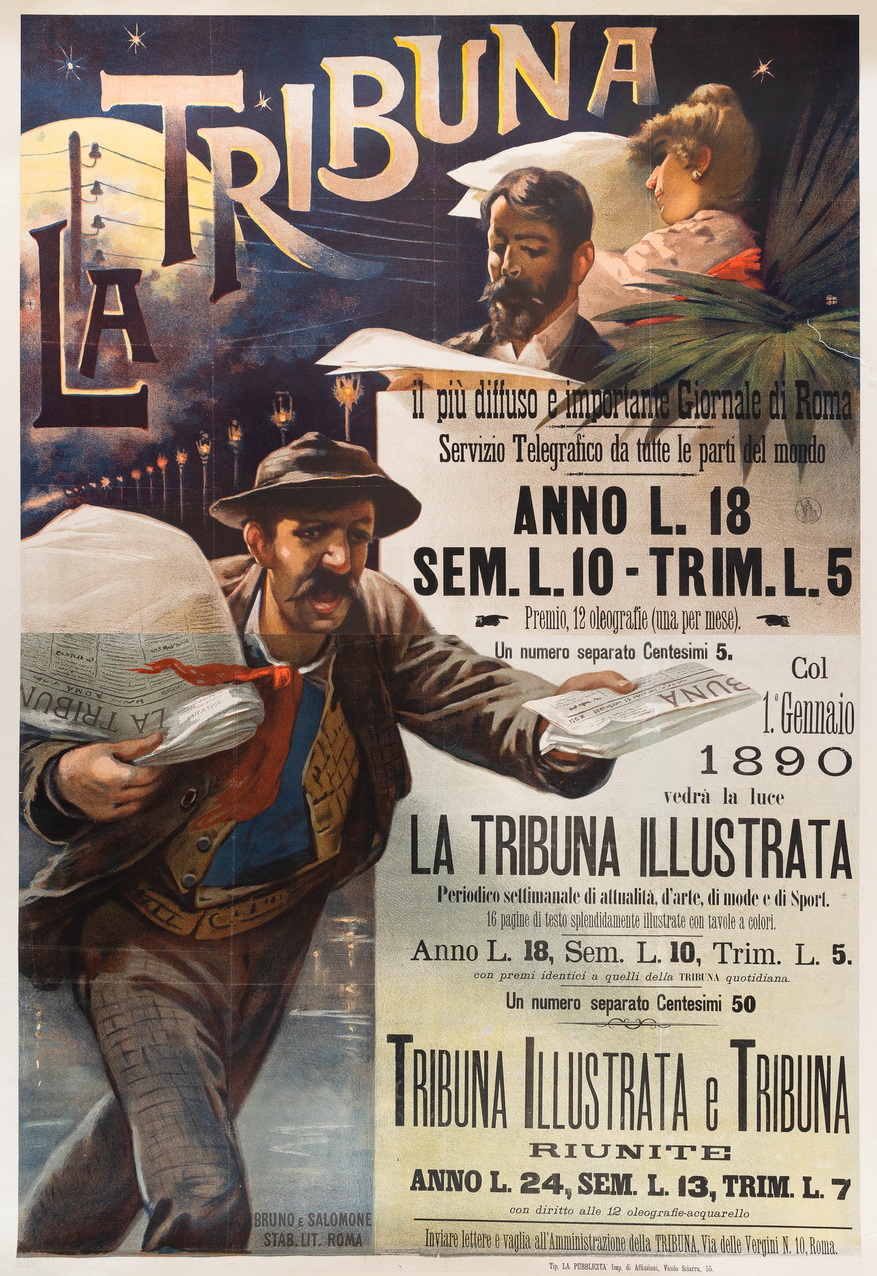 Affisso litografico, 1890. Impresso da Bruno e Salamone Stab. Lit - Roma. Cm 150 x 98 . Telato. Qualità A-