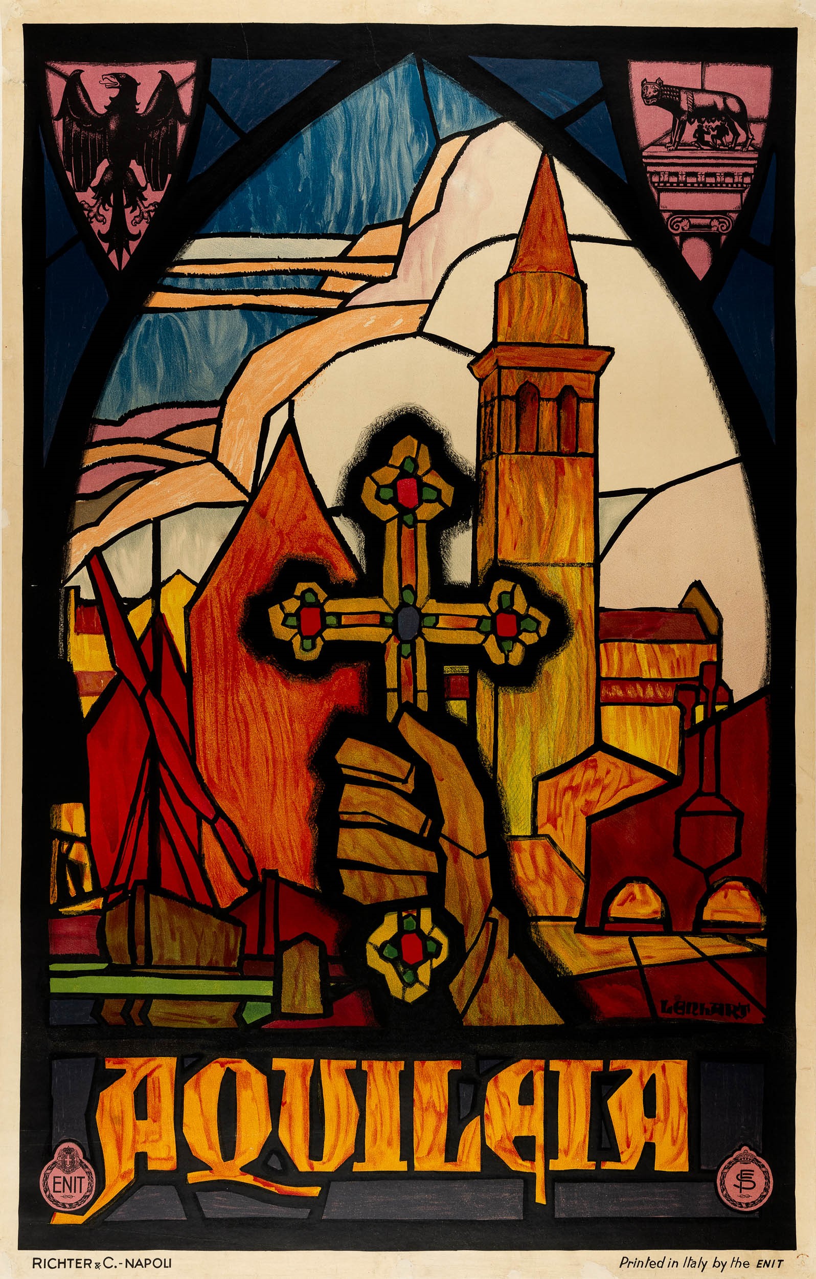 Affisso litografico realizzato per conto Enit, 1900 ca. Impresso da Ritcher & C. - Napoli. Cm 100 x 70. Qualità A-.