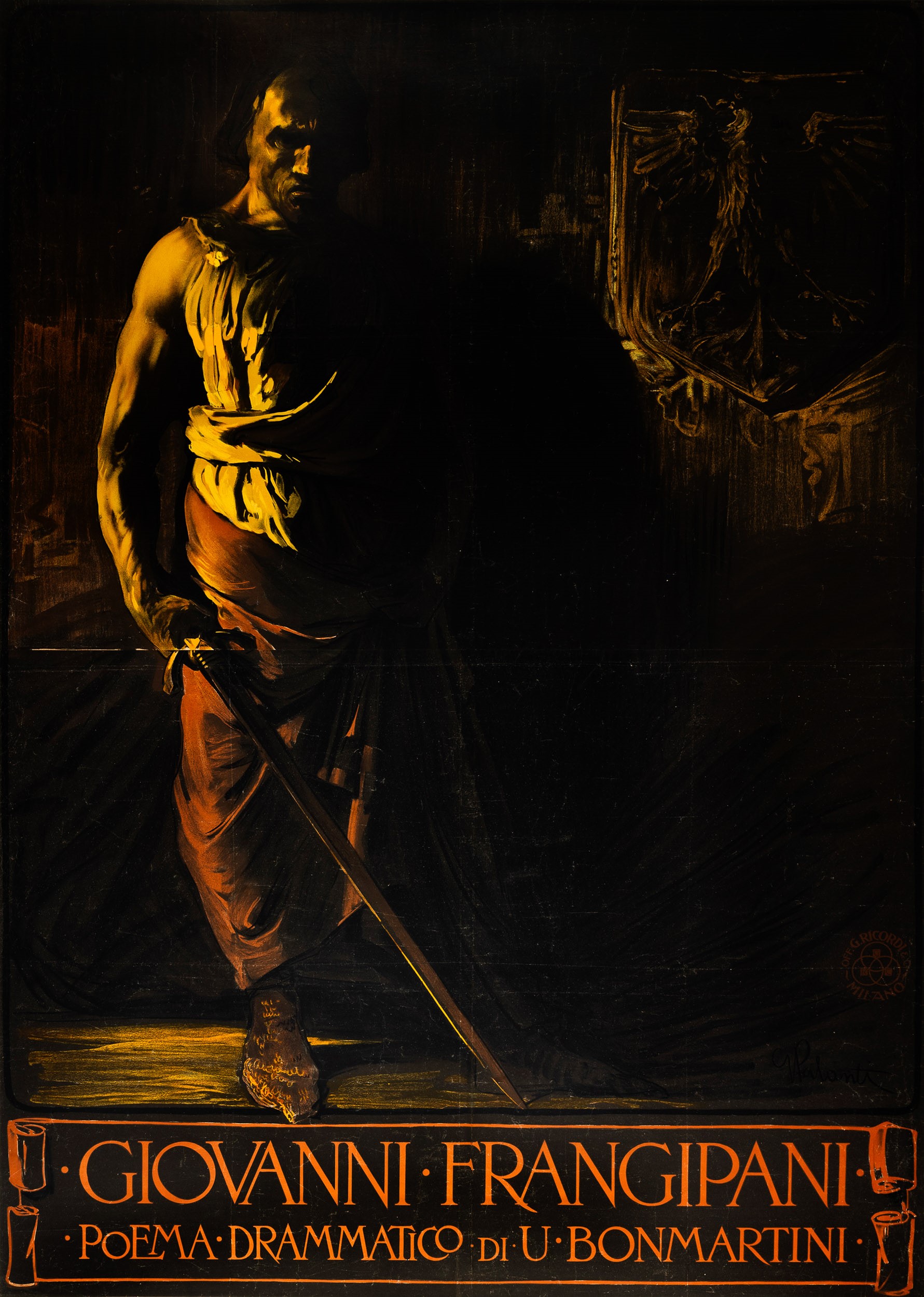 Affisso litografico, 1900 ca. Impresso Officine G. Ricordi - Milano. Realizzato per Zolfi Poggi e Astengo Savona.