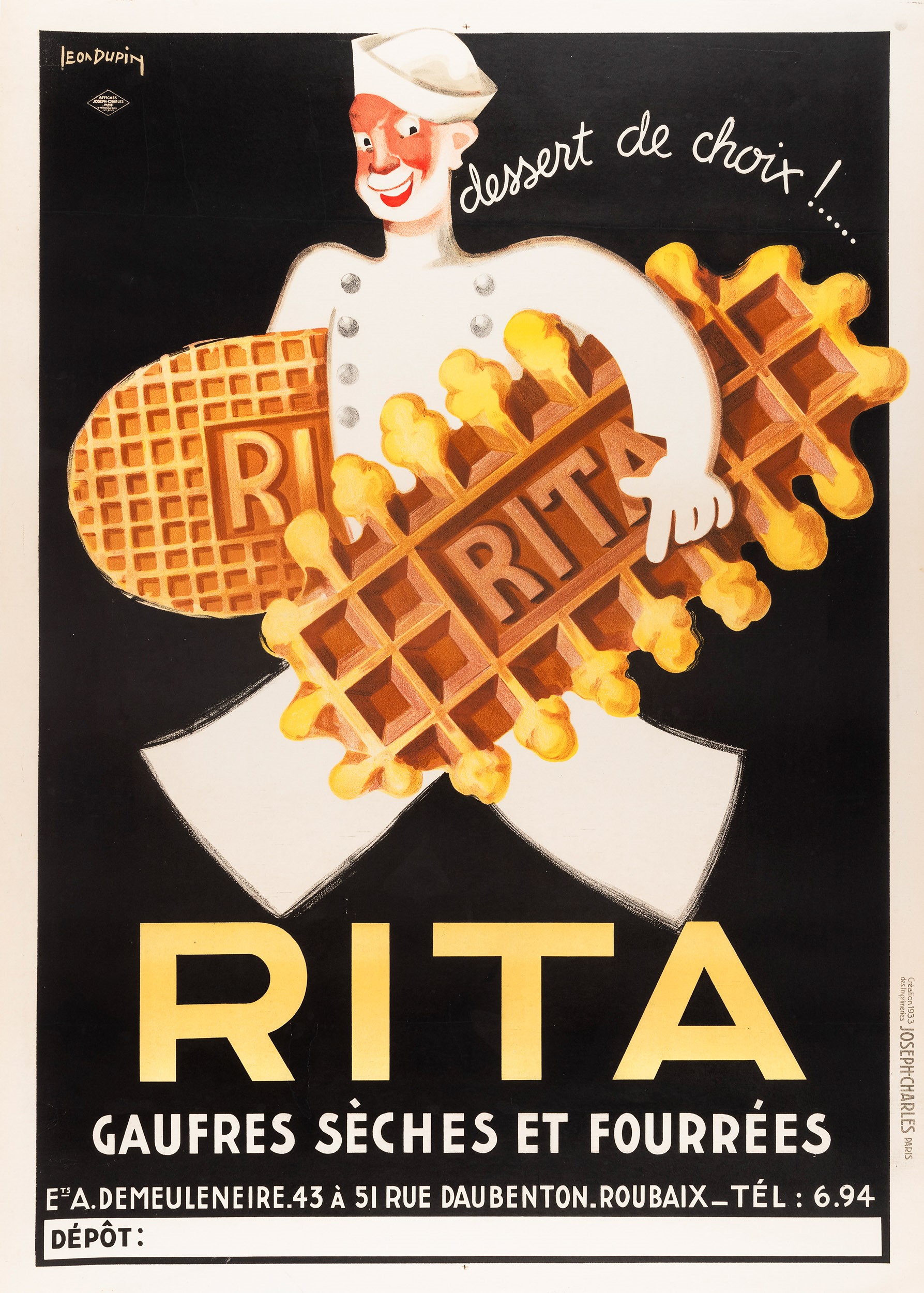 Affisso litografico, 1933. Impresso da Joseph - Charles - Parigi. Cm 140 x 100. Telato. Qualità B+.