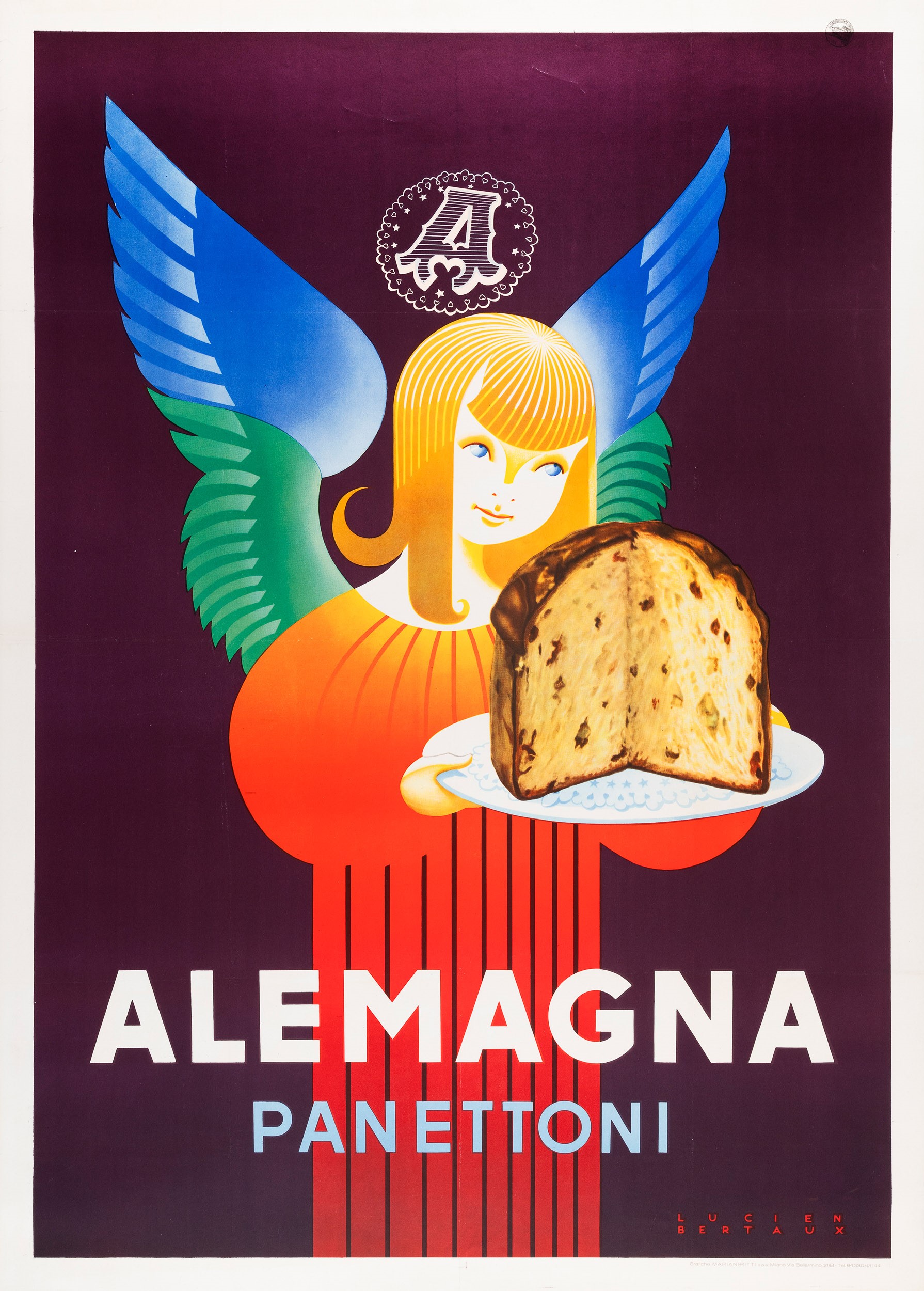 Affisso offset, 1955 ca . Impresso da Grafiche Mariani Ritti - Milano. Cm 140,5 x 100,5. Telato. Qualità A-