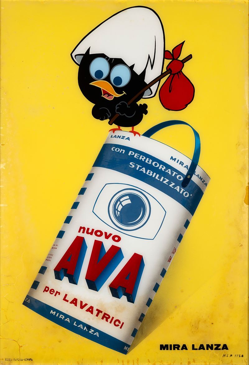 Vetrofania pubblicitaria Calimero - detersivo Ava