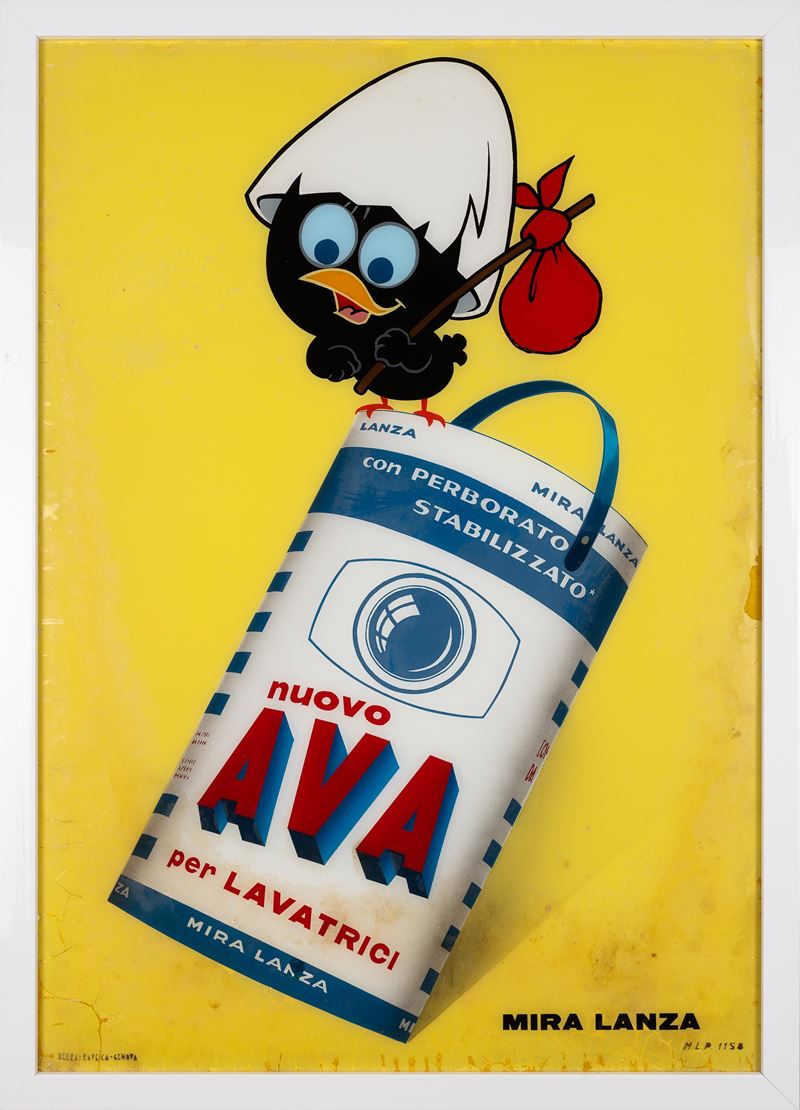 Stampata sul retro, 1960 ca. Produzione Mira Lanza per l'affissione stradale. Cm 120 x 84. In cornice. Qualità B.