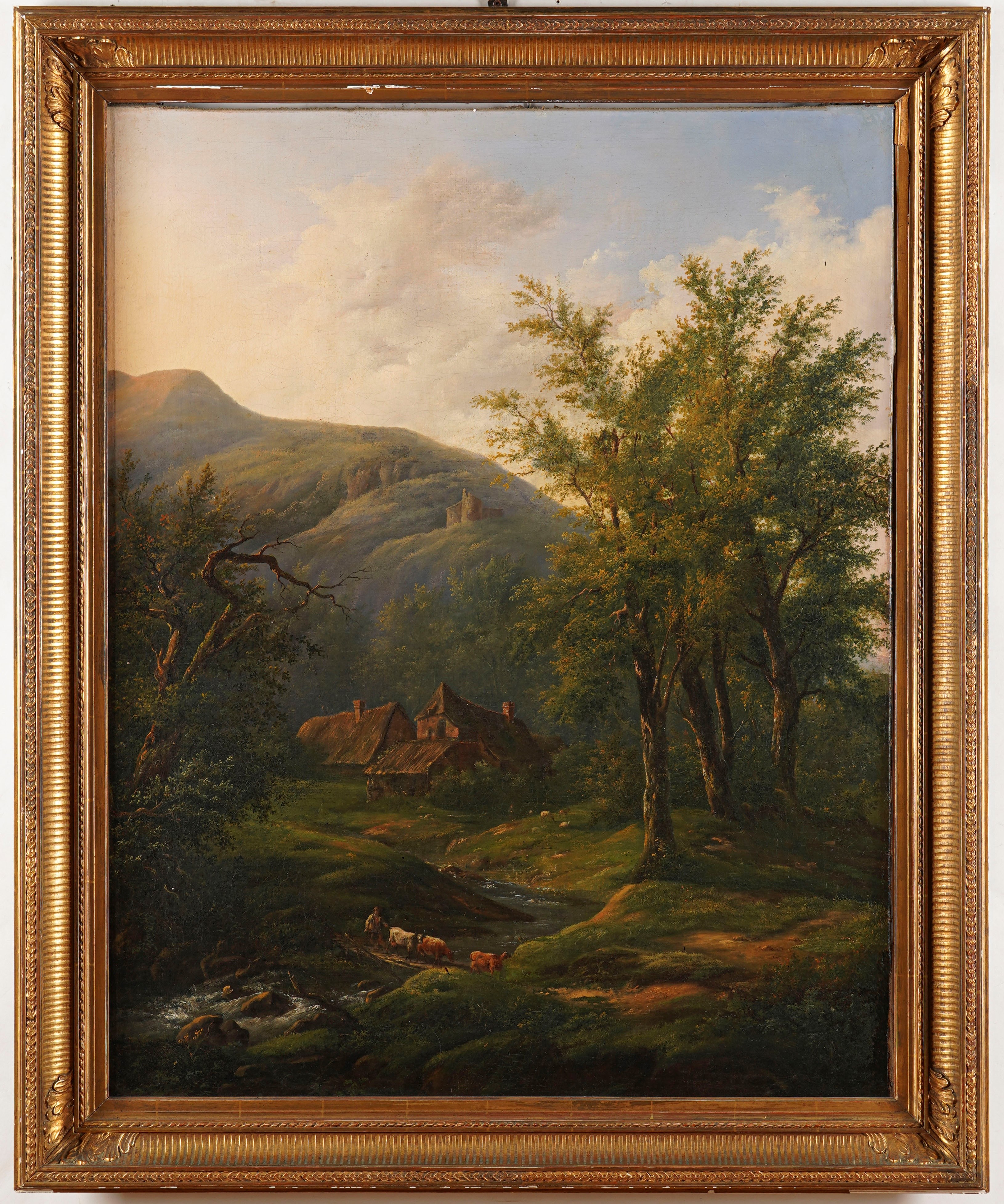 Anonimo del XVIII/XIX secolo Paesaggio collinare con cascinali e pastore