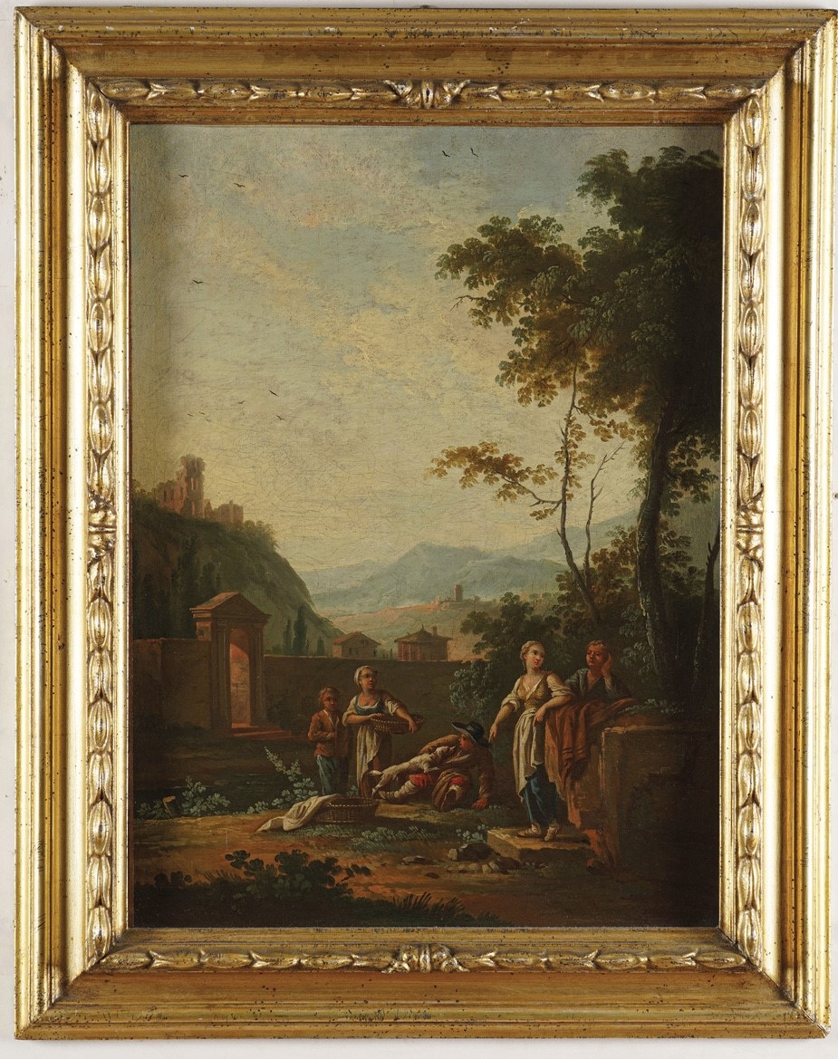 Scuola del XVIII secolo Paesaggio con popolani