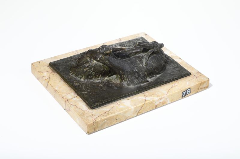 Bronzo fuso e patinato e base in marmo