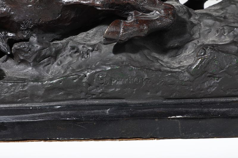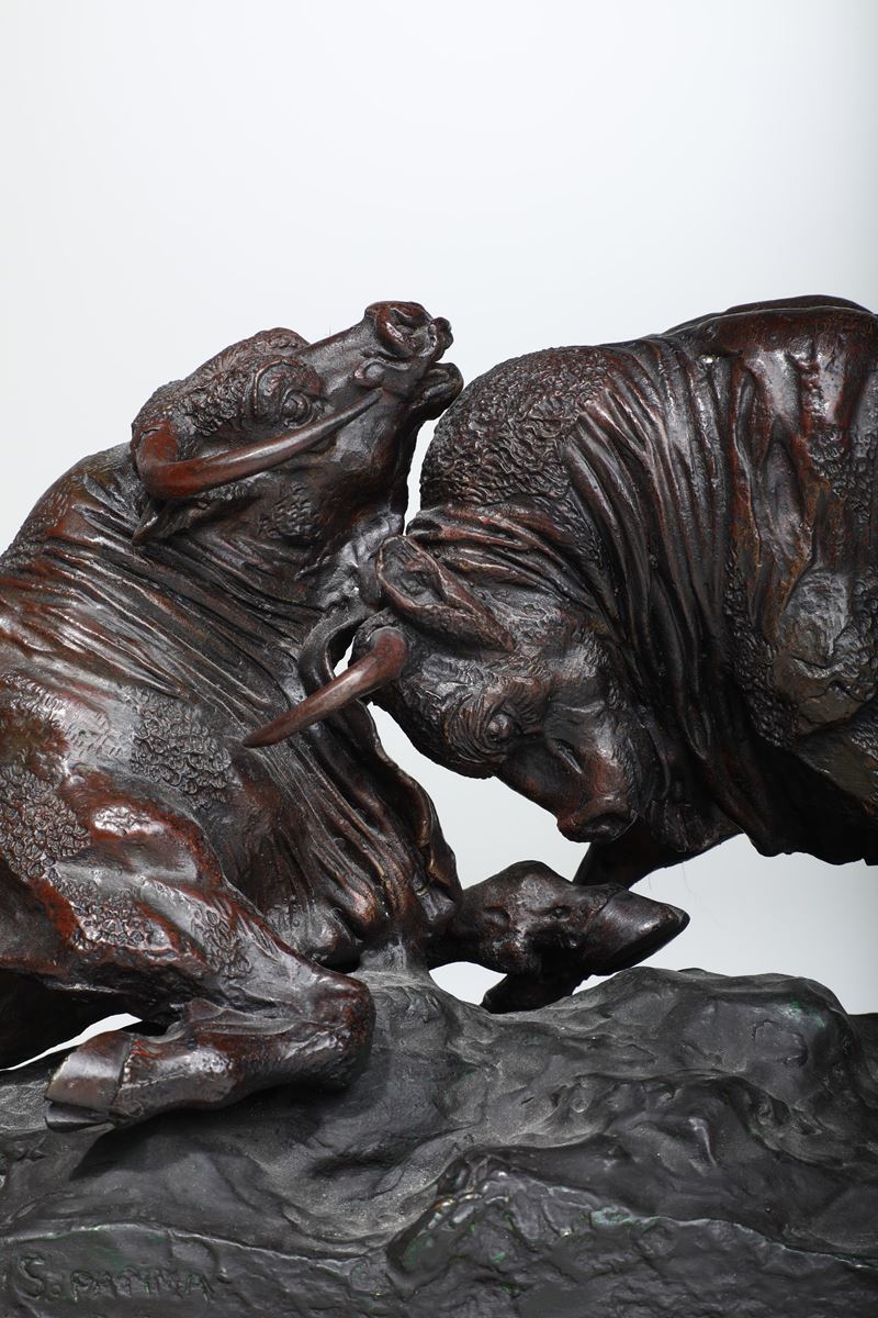Firma sulla base "S.Patina" (?) Combattimento tra tori