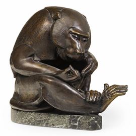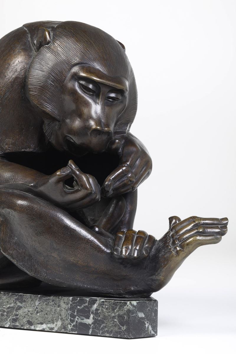 Bronzo fuso e patinato e base in marmo