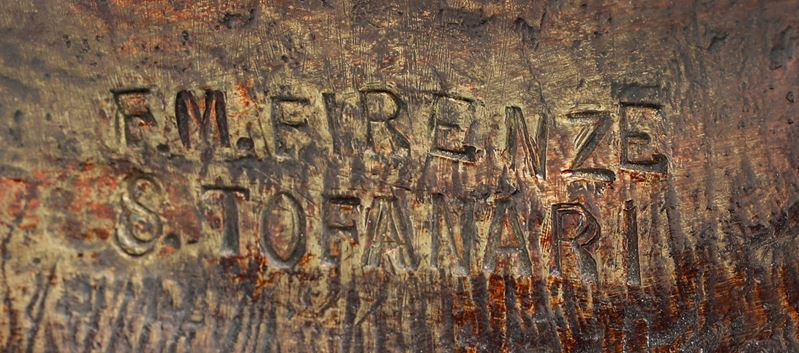 Sulla gamba iscrizione e firma a lettere incusse "F M Firenze" "S.Tofanari"
