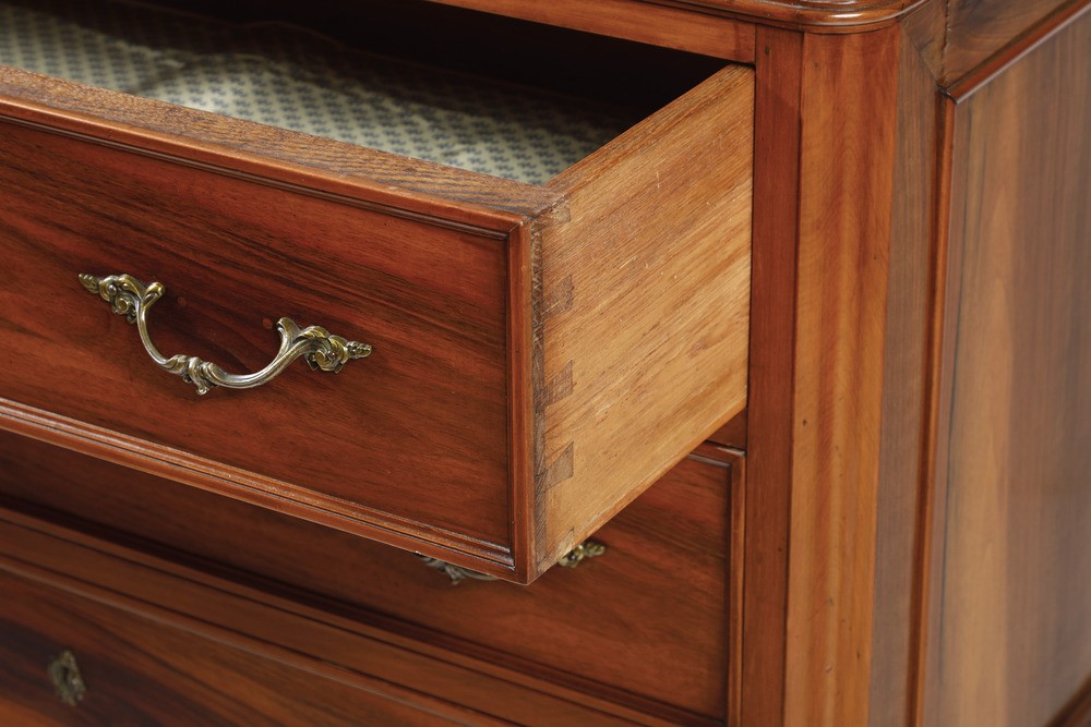Comò in legno a quattro cassetti con specchiera. XIX secolo