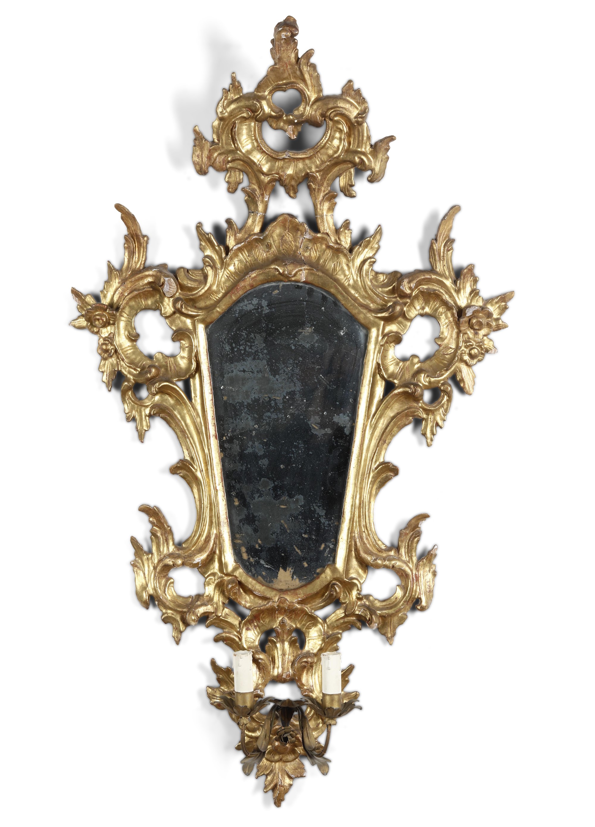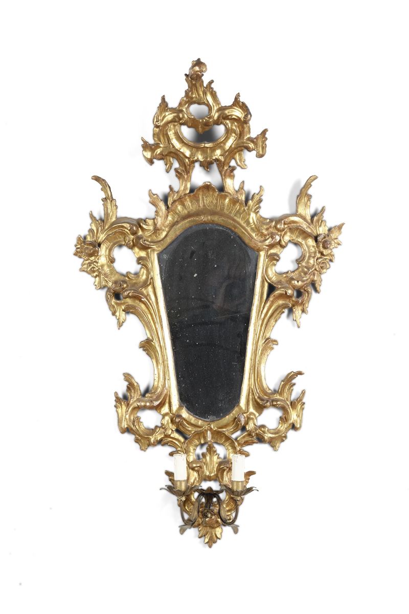 Coppia di specchiere in legno intagliato e dorato. XIX secolo