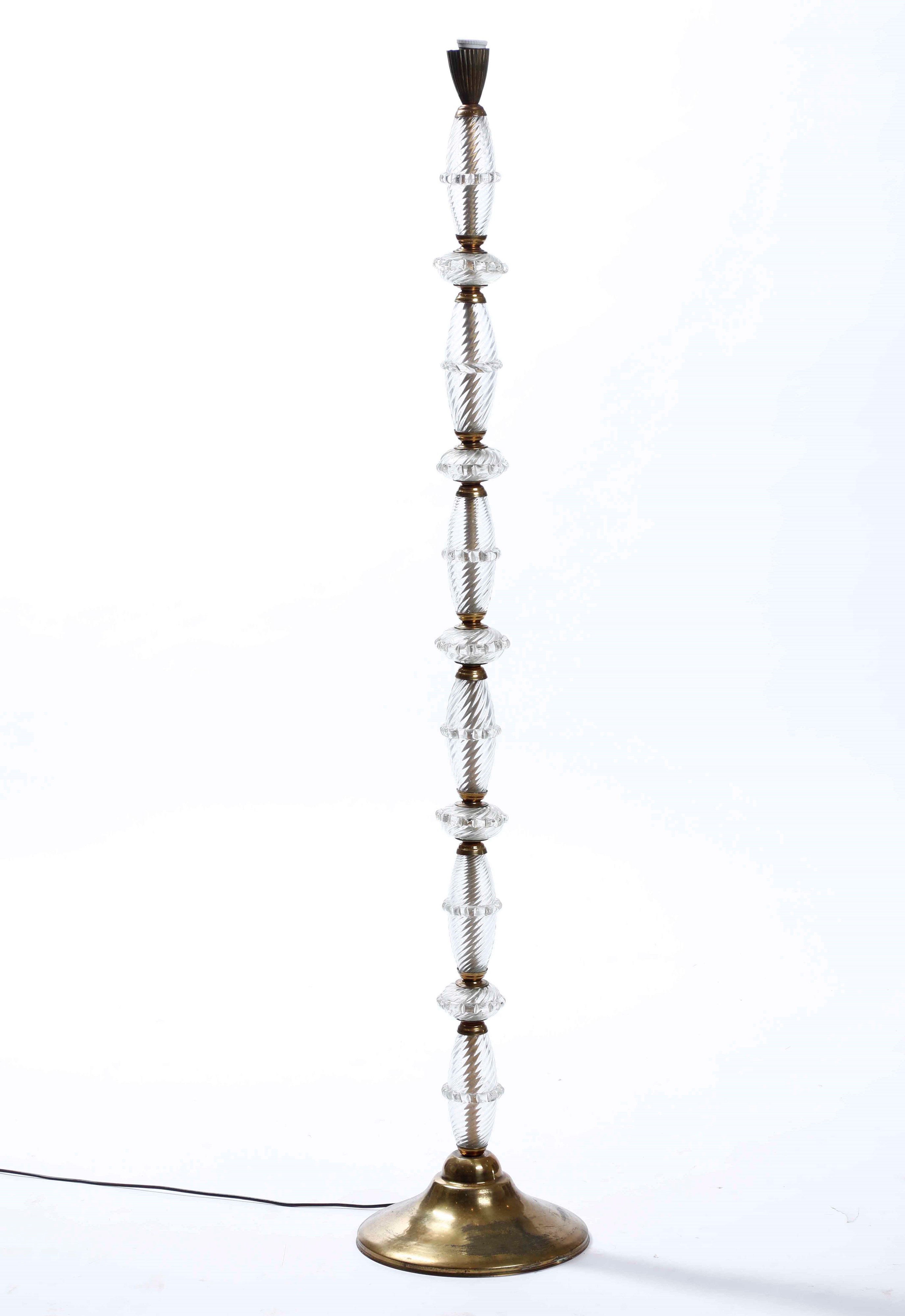 Lampada da terra in ottone e vetro di Murano. Italia XX secolo