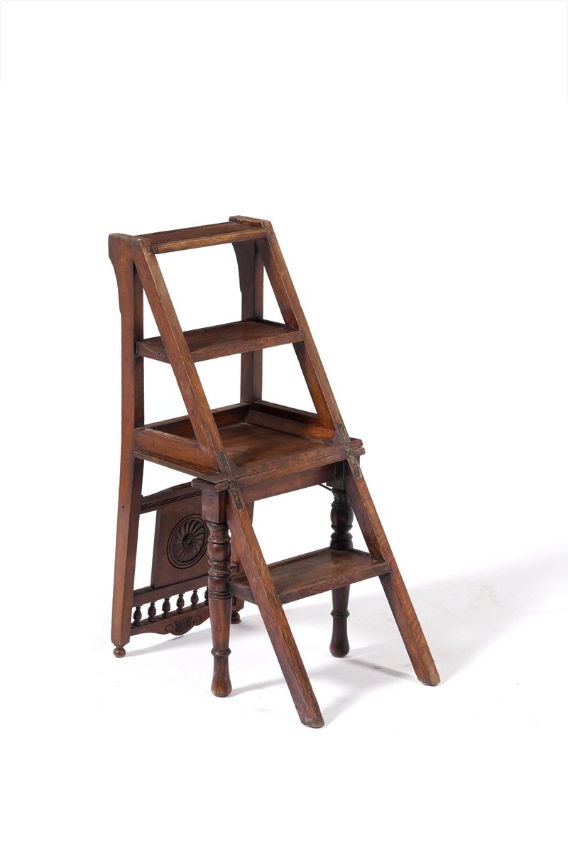 Sedia in legno modificabile a scaletta da biblioteca. XIX-XX secolo