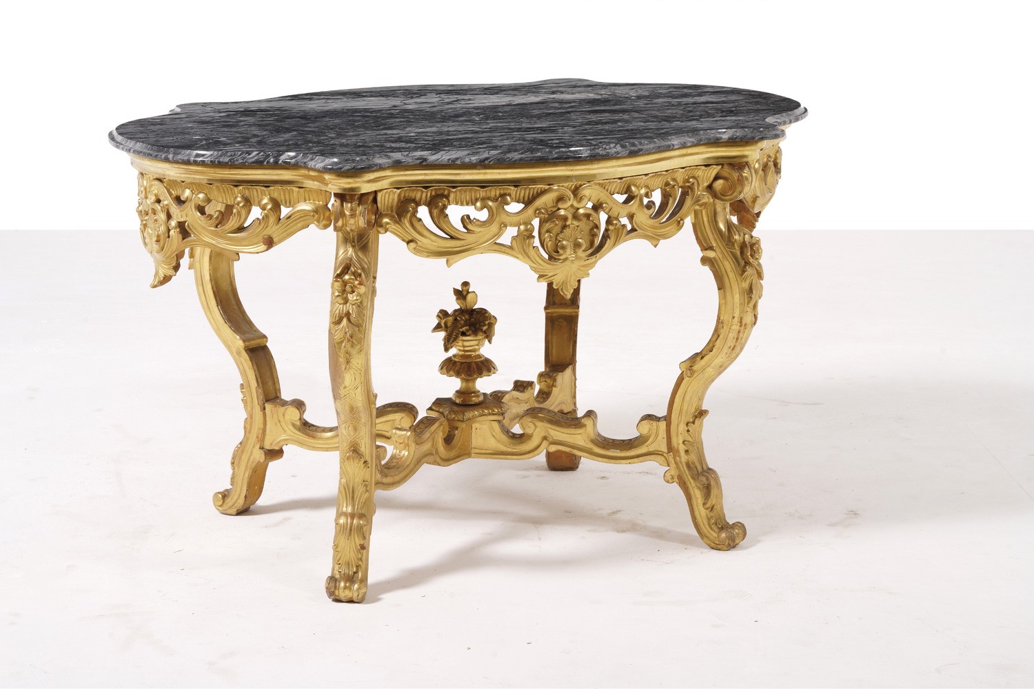 Tavolo da centro in legno intagliato e dorato. XIX secolo