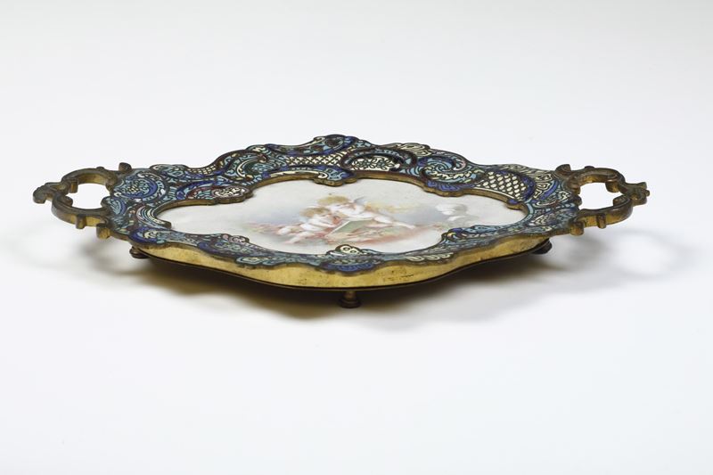 Vassoietto in bronzo e smalti policromi. XX secolo
