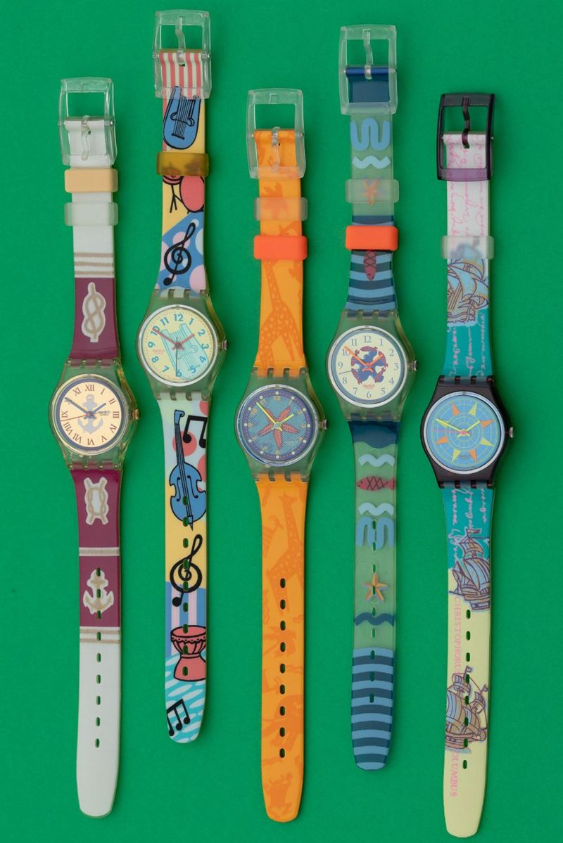 Lotto di 5 swatch misura 25 mm: LK132 1991 LK130 1992 LV100 1991 LK134 1992 LK135 1992