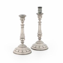 Coppia di candelieri. Argenteria italiana della prima metà del XX secolo.