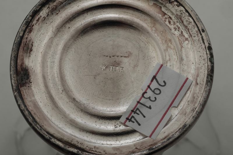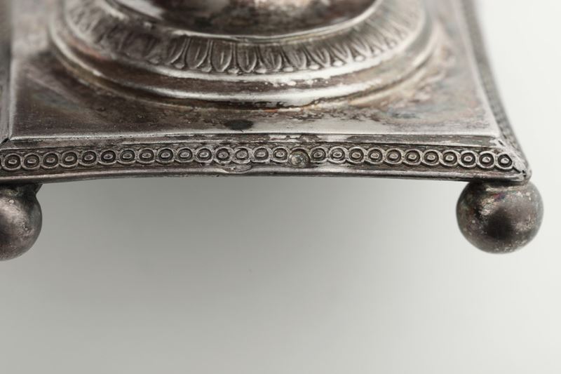 Coppia di saliere in argento, Genova XIX secolo, una saliera doppia e una salierina in metallo argentato
