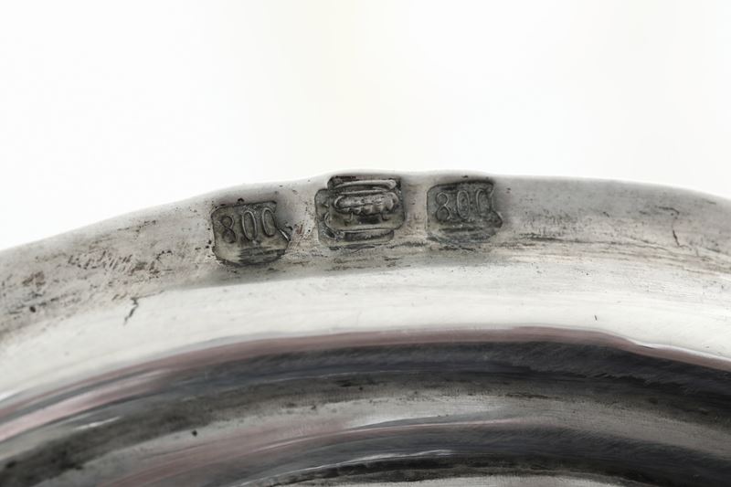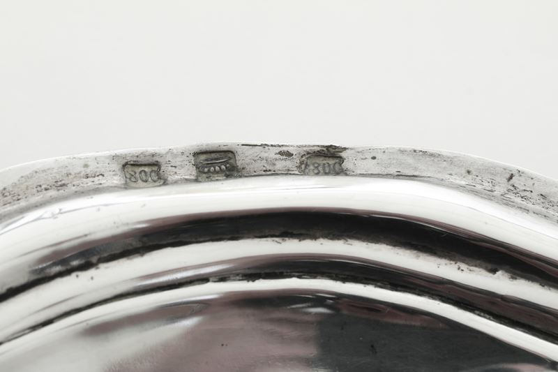 Coppia di vassoi con bordo sagomato. Argenteria milanese, prima metà del XX secolo. Argentiere Umberto Malinverni