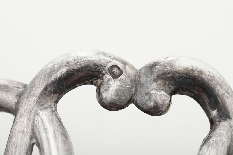 Argento fuso, sbalzato e traforato e ampolle in vetro soffiato (non coeve)
