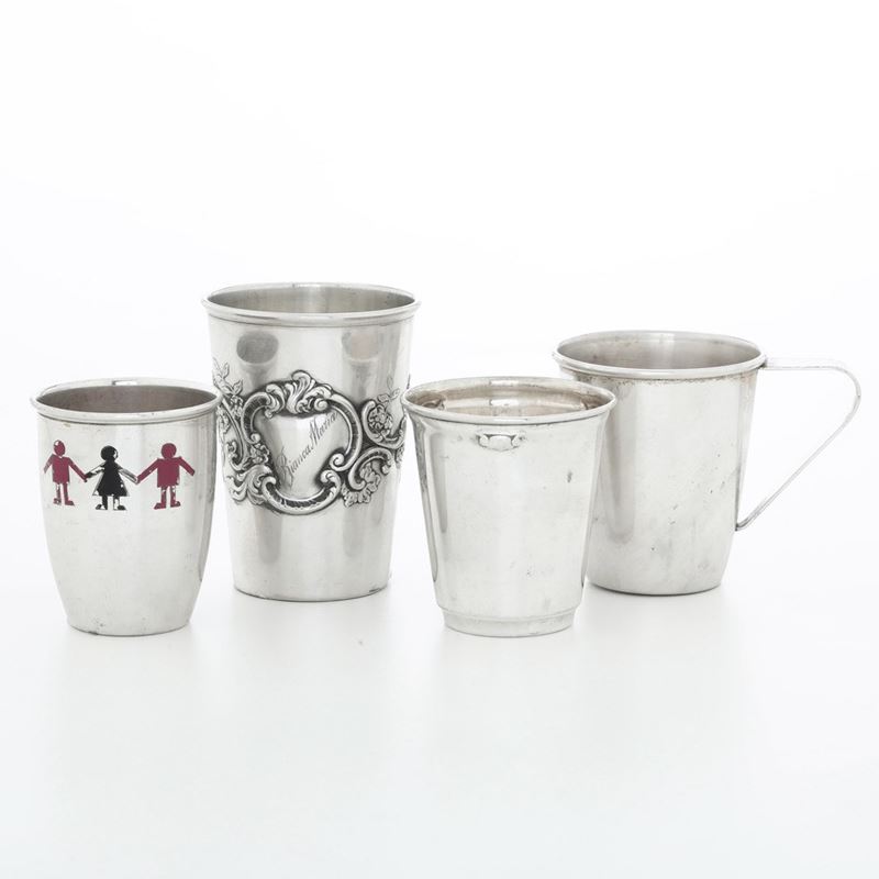 Quattro bicchieri da viaggio. Differenti manifatture italiane del XX secolo