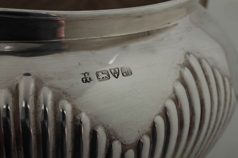 Servizio da tè, teiera e lattiera. Chester, 1914 Zuccheriera. Chester, 1912. Marchio dell'argentiere non identificato