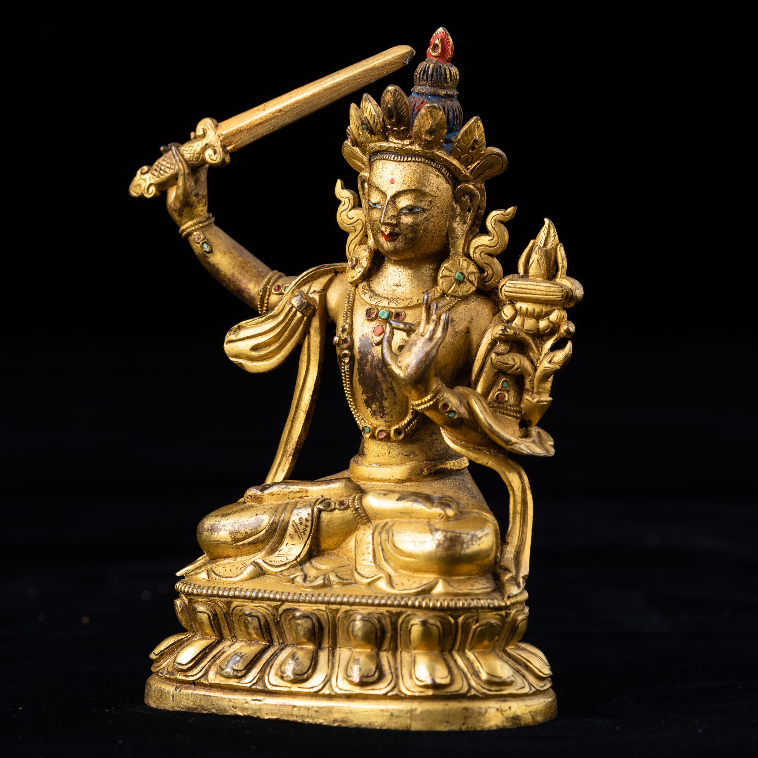 Qianlong period (1736-1796). Semi-precious stone inlays and traces of polychromy