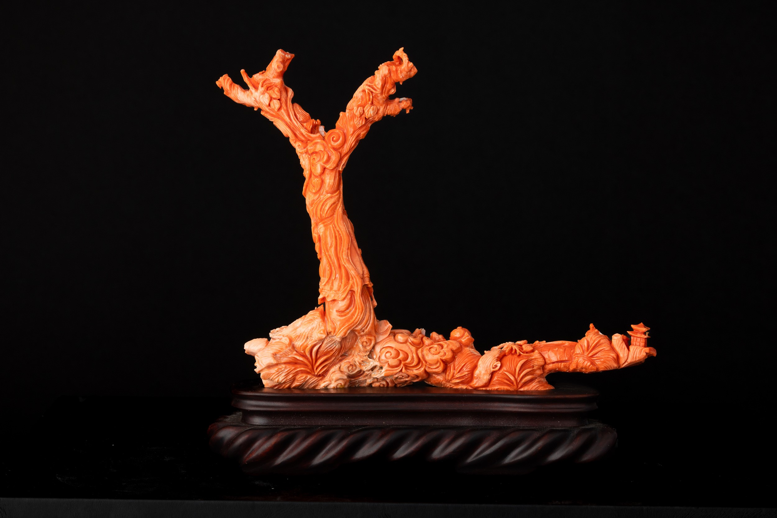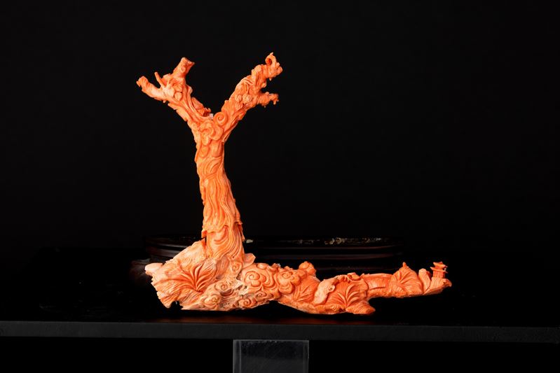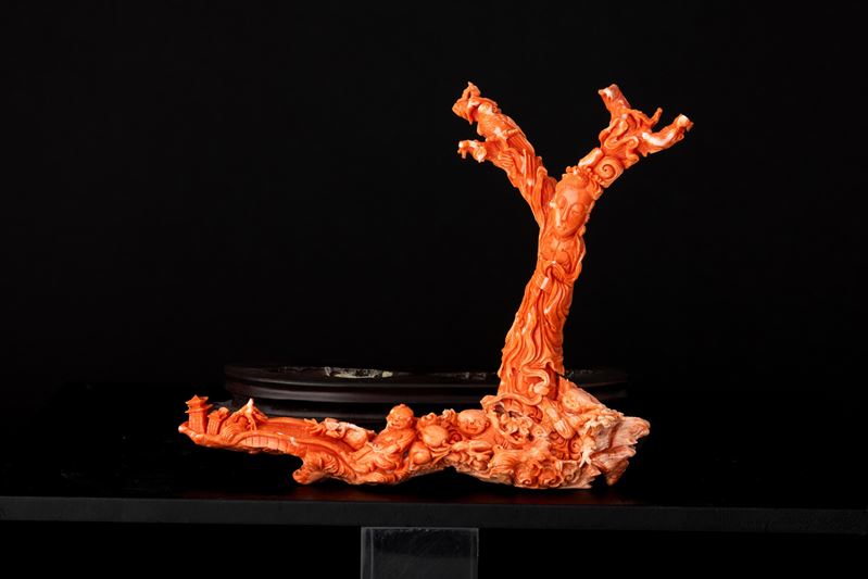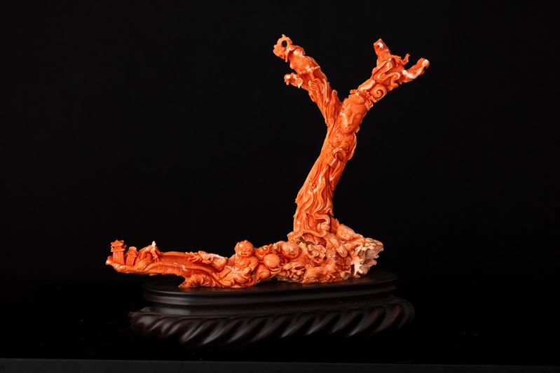 Carved coral group depicting maiden with children, China, Qing Dynasty, 19th century