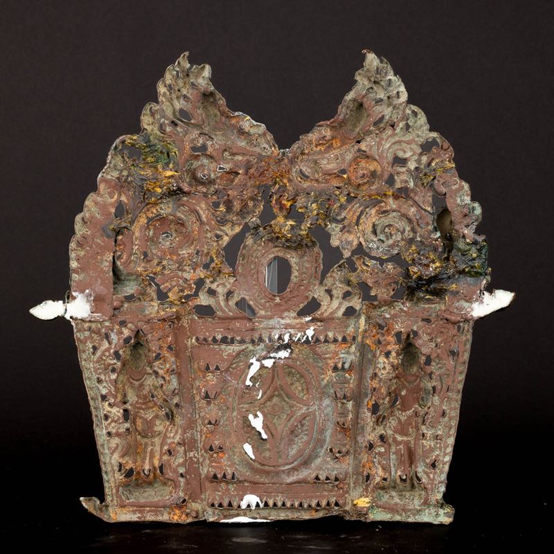 Embossed copper frieze with figures of deities, Nepal, 18th century