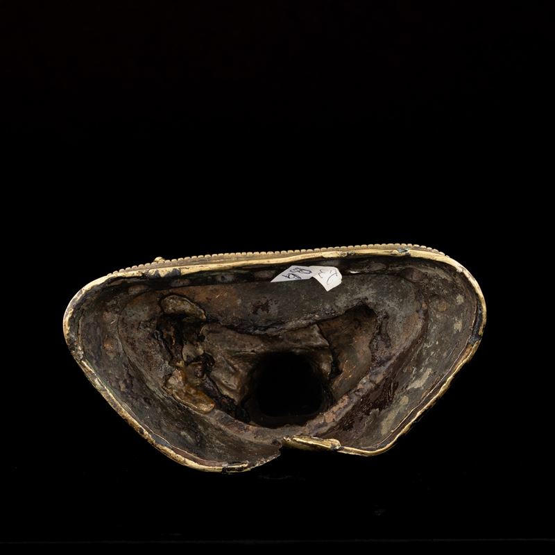 Figure of Avalokitesvara seated on double gilt brass lotus blossom, Tibet, 14th - 15th century