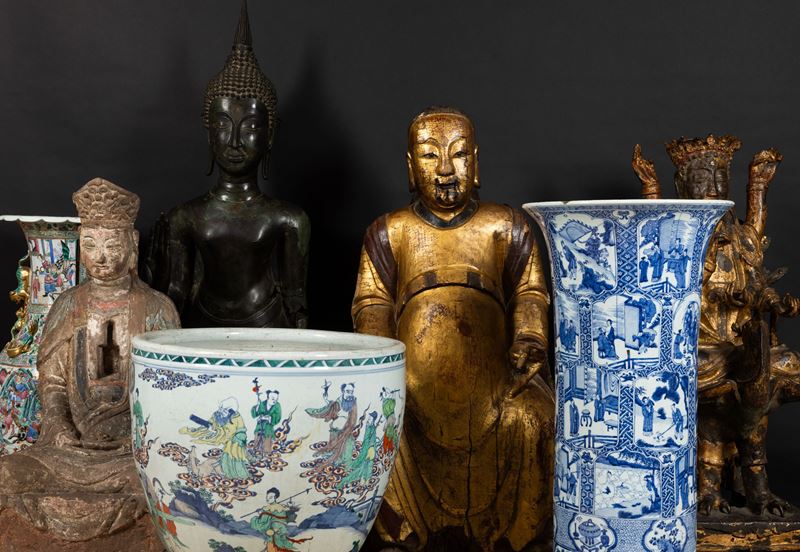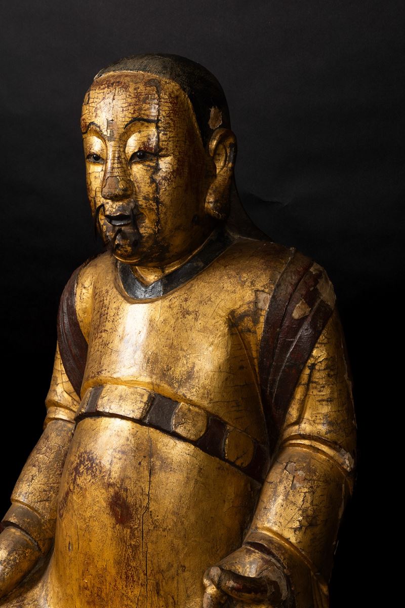 Important and large gilded wooden dignitary figure, China, Qing Dynasty, Kangxi era (1662-1722)