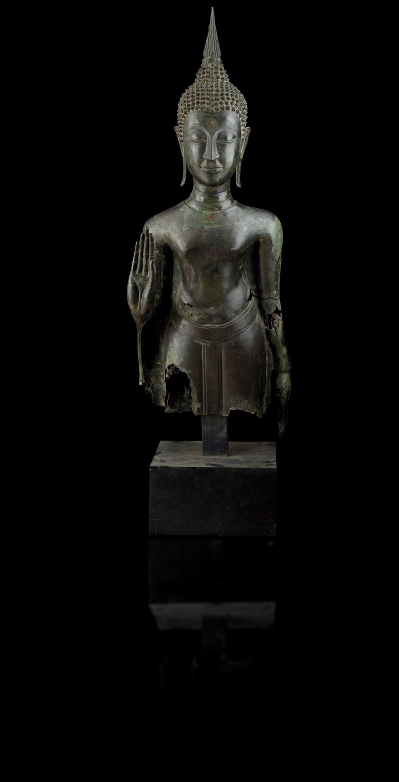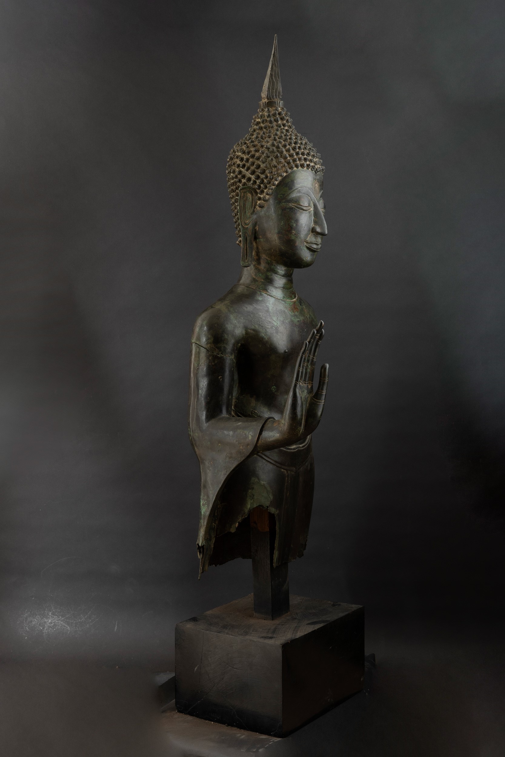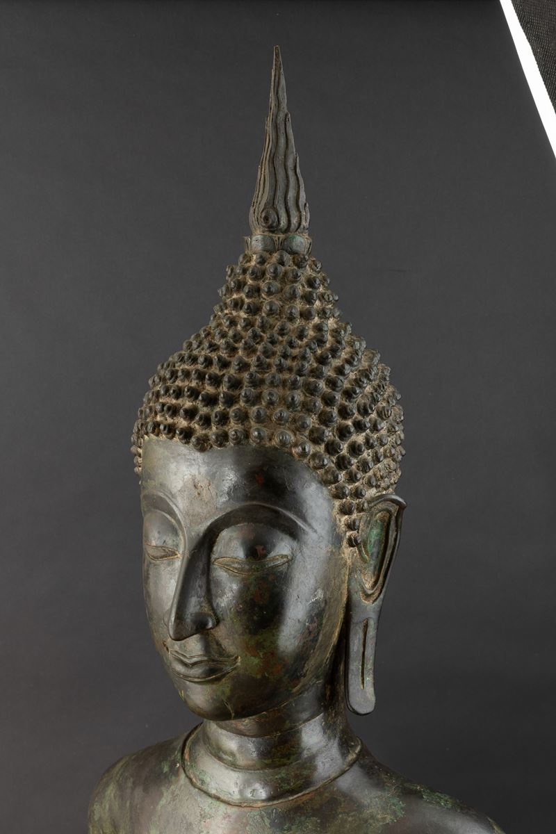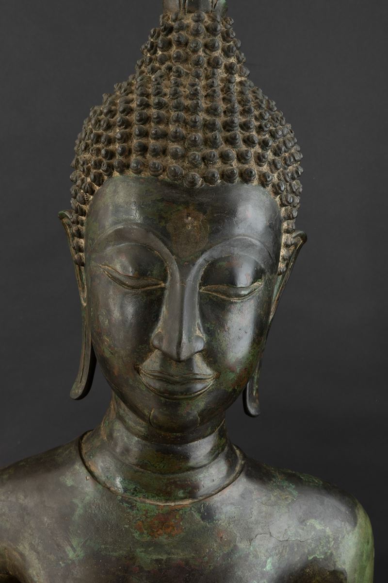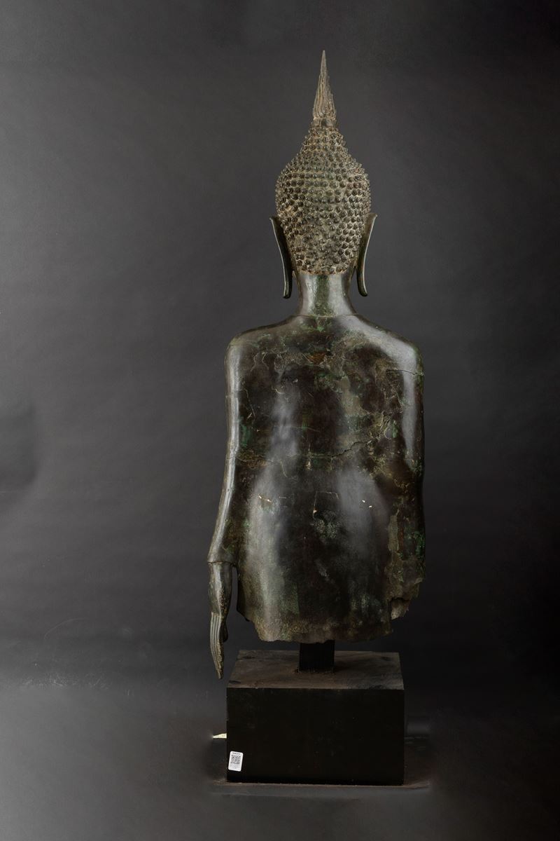 Important monumental bronze standing Buddha figure, Thailand, 15th century, Sukhaotai period (1238-1368)