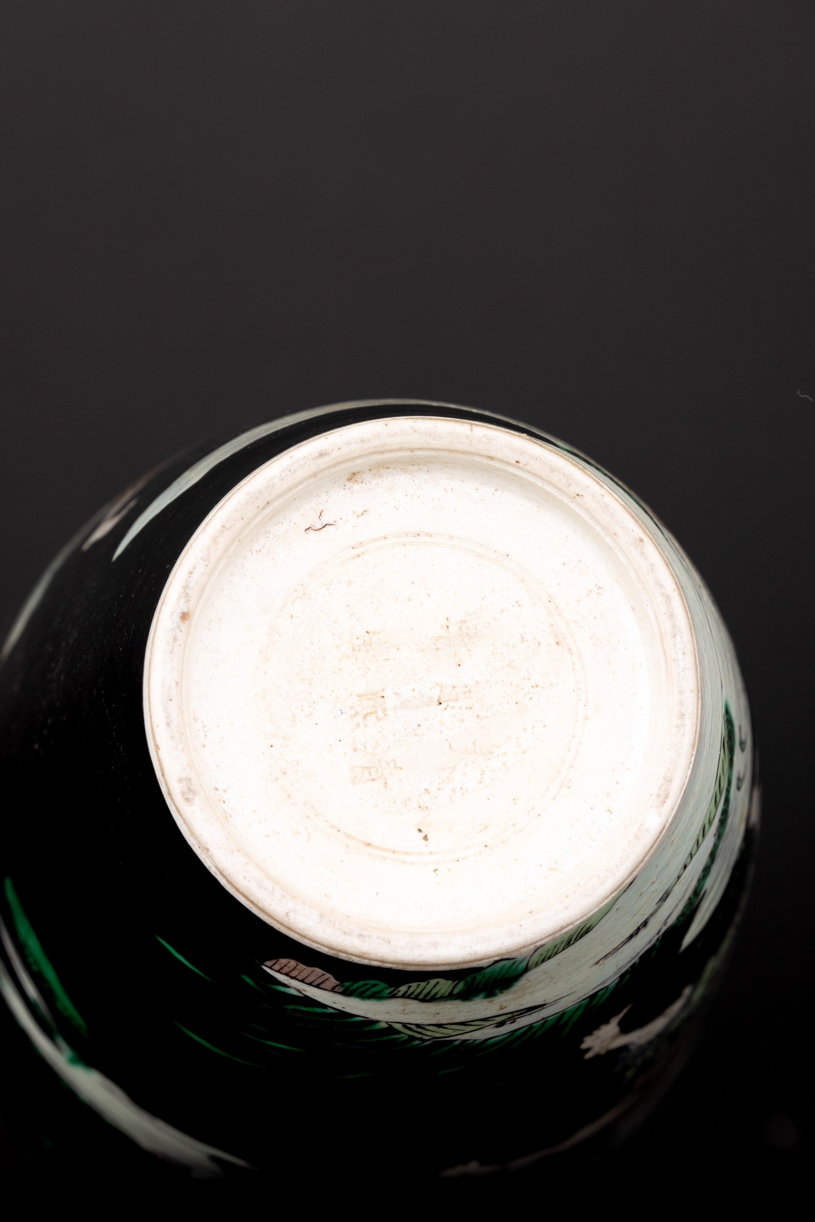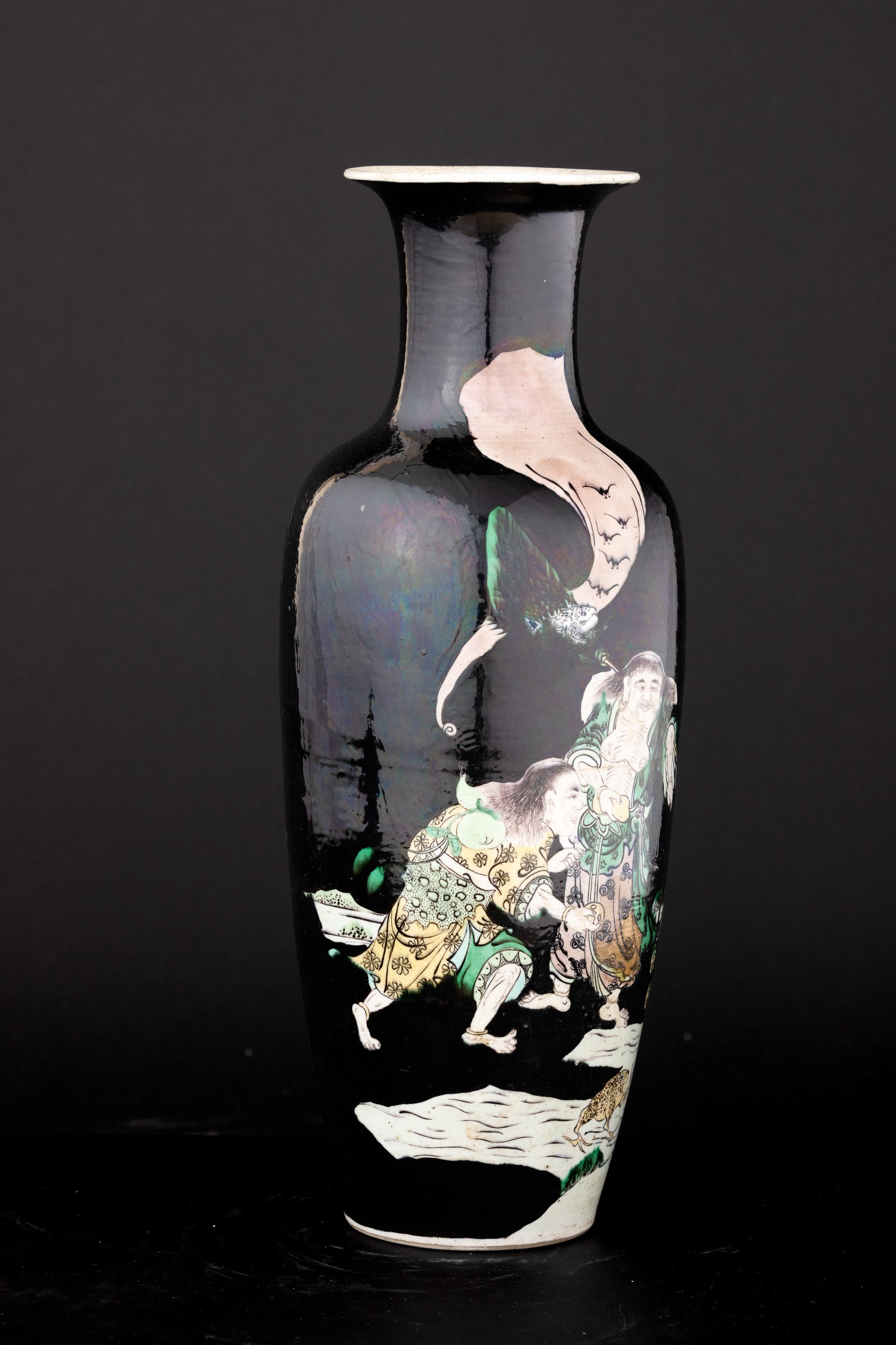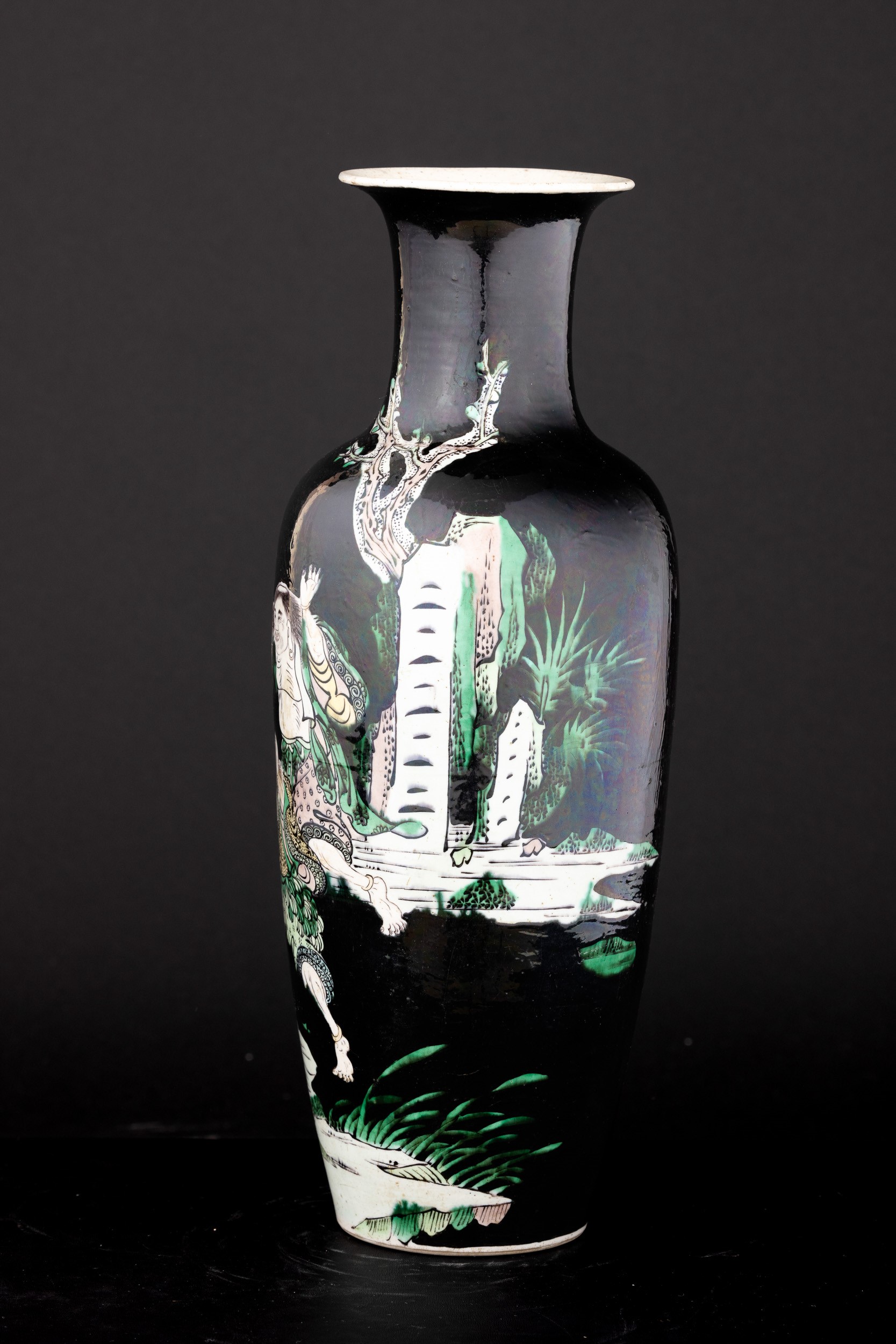 Polychrome enamel Famille Noir porcelain vase with scene depicting dancing sages, China, Qing Dynasty, Kangxi engraved mark (1662-1722)