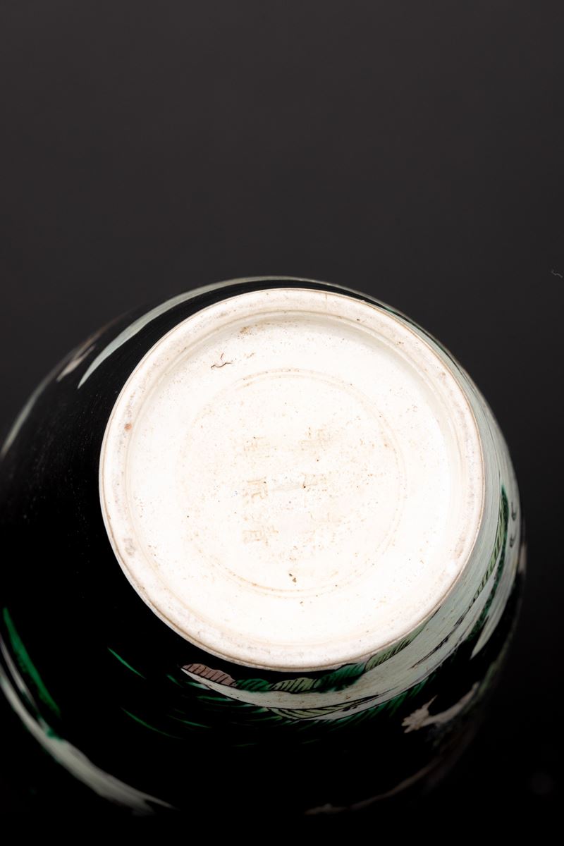 Polychrome enamel Famille Noir porcelain vase with scene depicting dancing sages, China, Qing Dynasty, Kangxi engraved mark [..]
