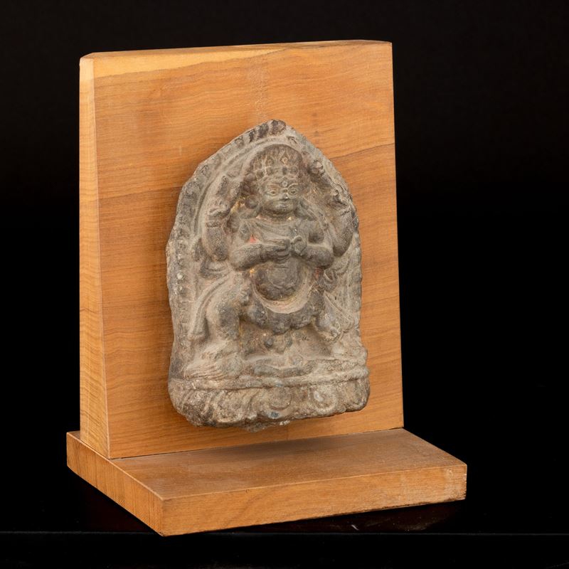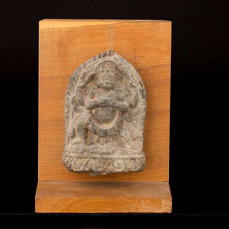 Stone carved stele with Mahakala figure, Tibet, 15th century