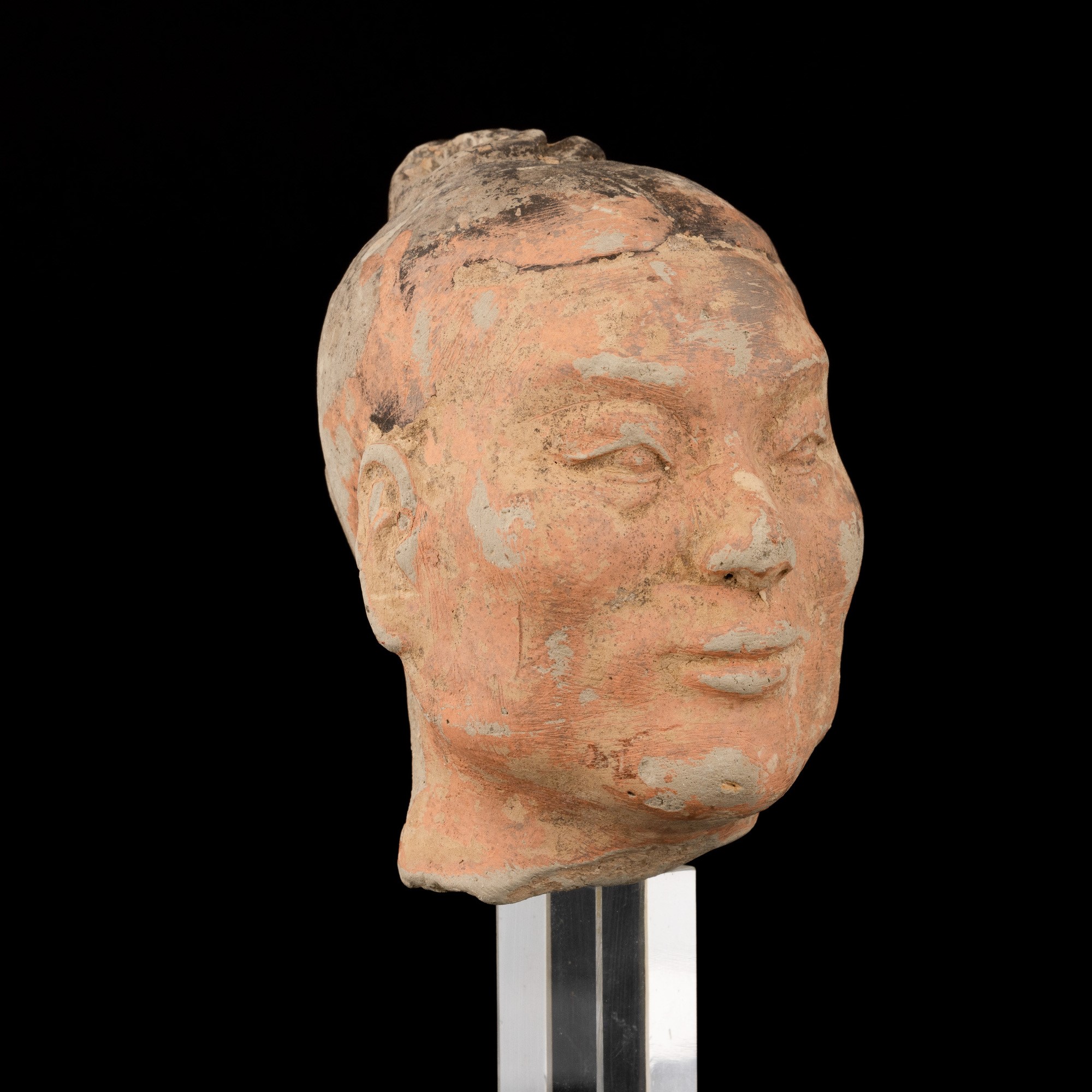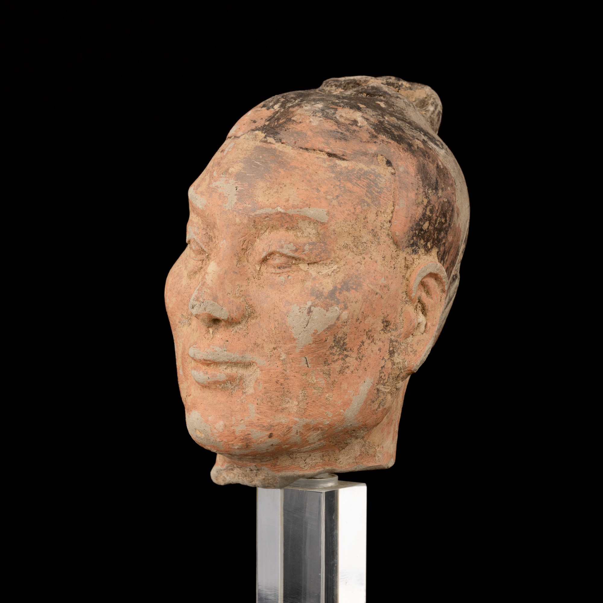 Terracotta Liao warrior head, China, Han Dynasty (206 B.C.-220 A.D.), 140 B.C.