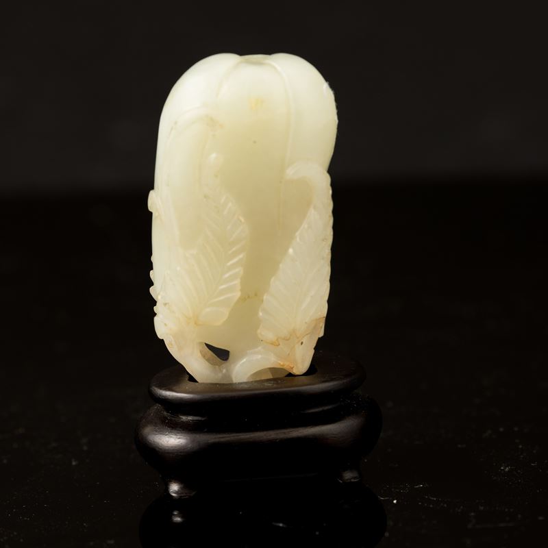 White jade element with a carved flower bud, China, Qing Dynasty, Qianlong period, 18th century