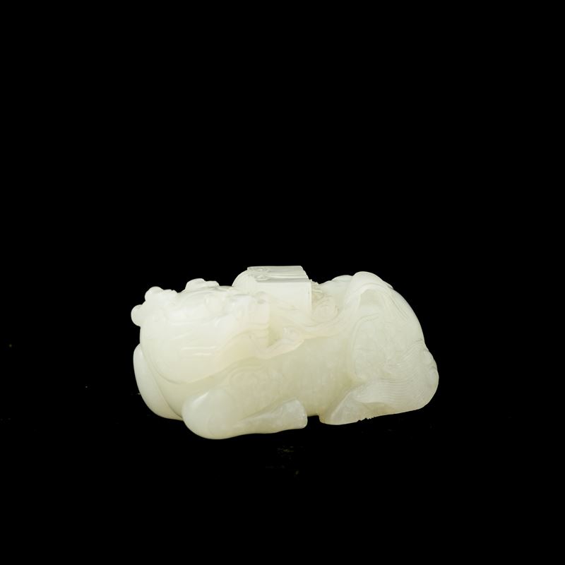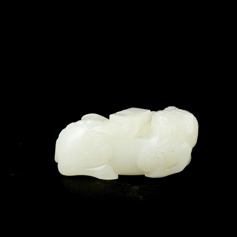White jade figure depicting cat, China, Qing Dynasty, 19th century