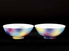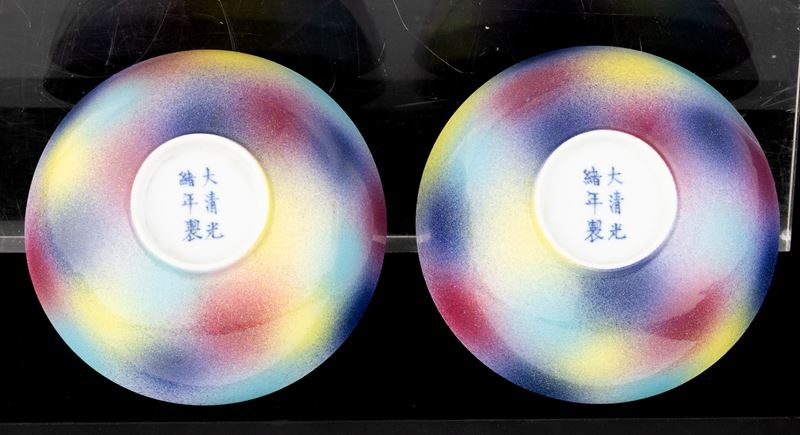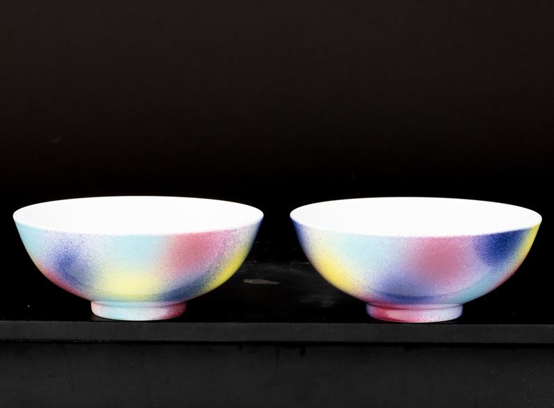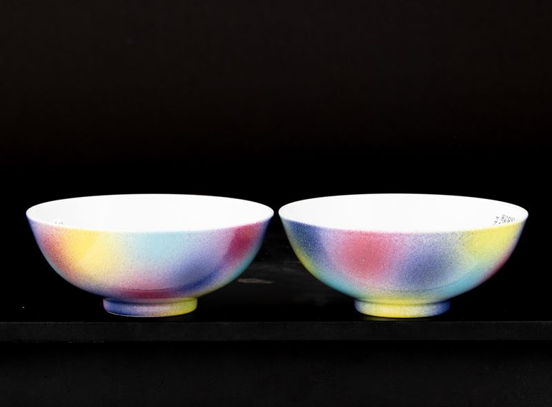 Coppia di ciotole in porcellana multicolore, Cina, XIX secolo
