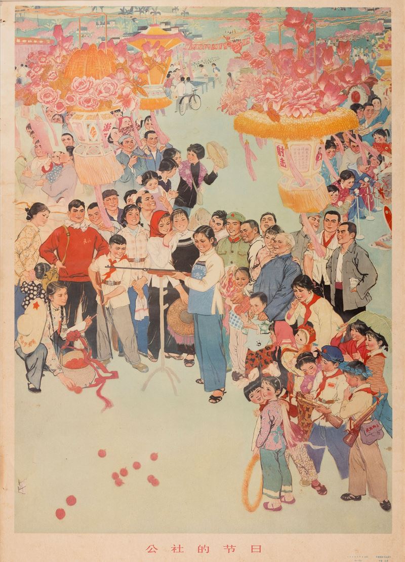 Coppia di manifesti repubblicani raffiguranti scene di sport e giochi, Cina, Repubblica, XX secolo