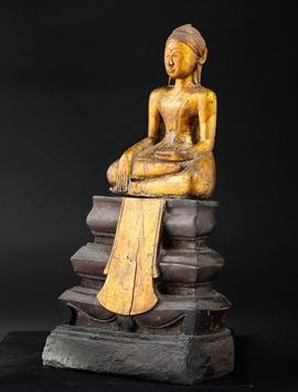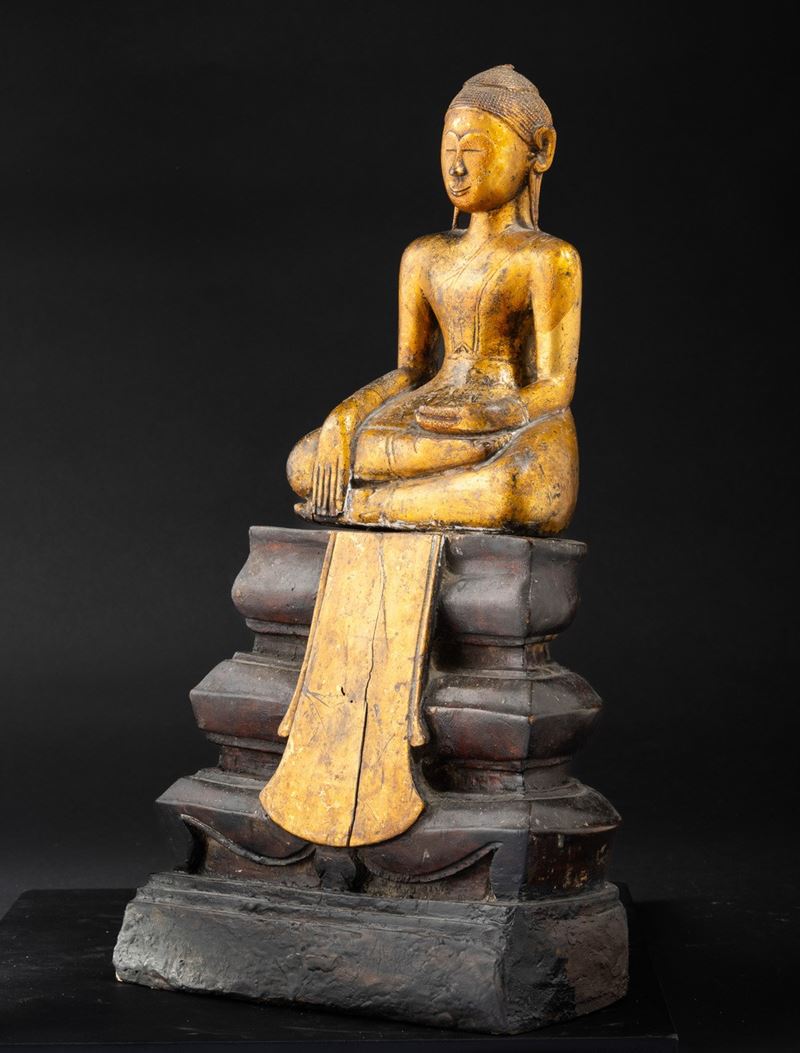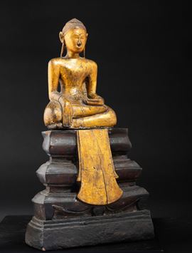 Figura di Buddha Sakyamuni in legno laccato e dorato, Thailandia, XIX secolo, Regno di Rattanakosin/del Siam (1782-1932)