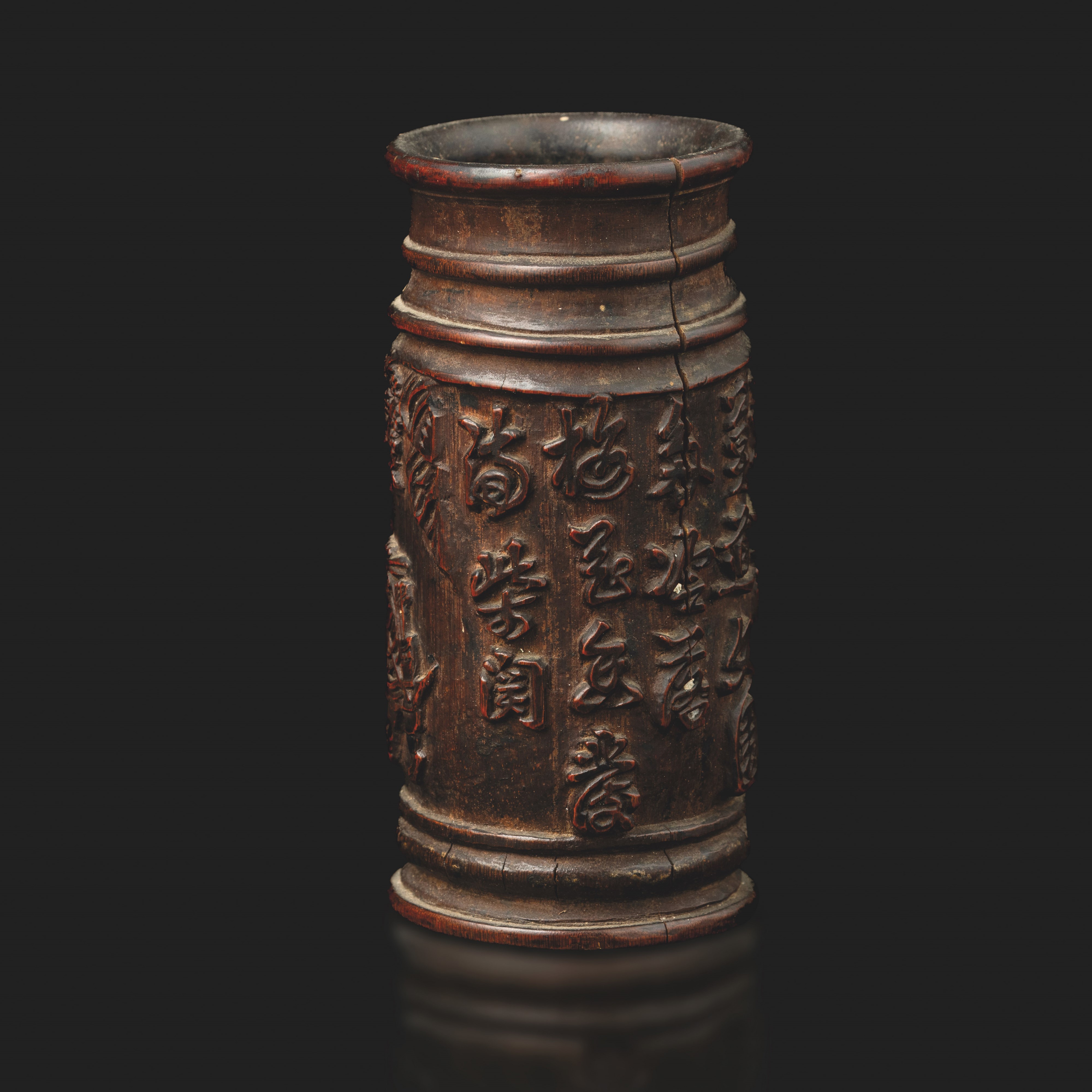 Sciacqua-pennelli in legno duro con iscrizioni, Cina, XIX secolo