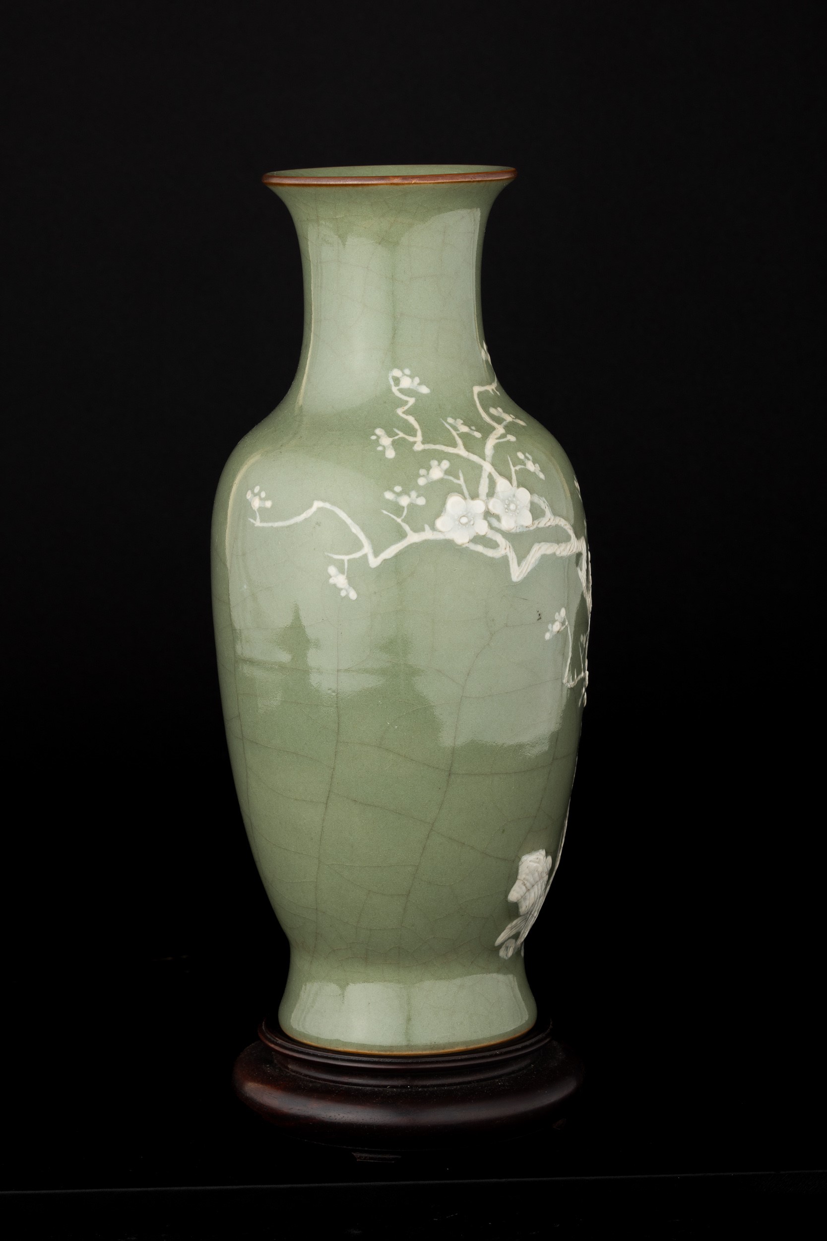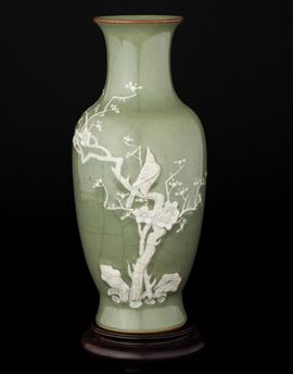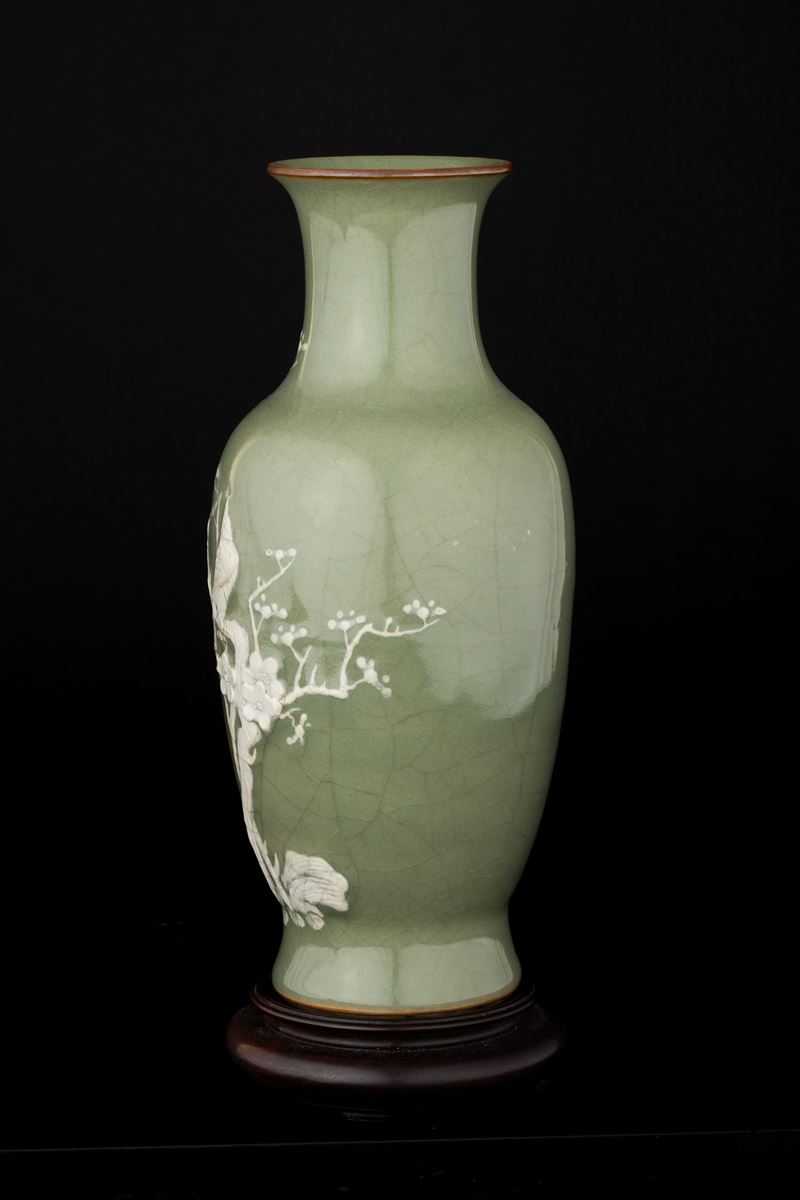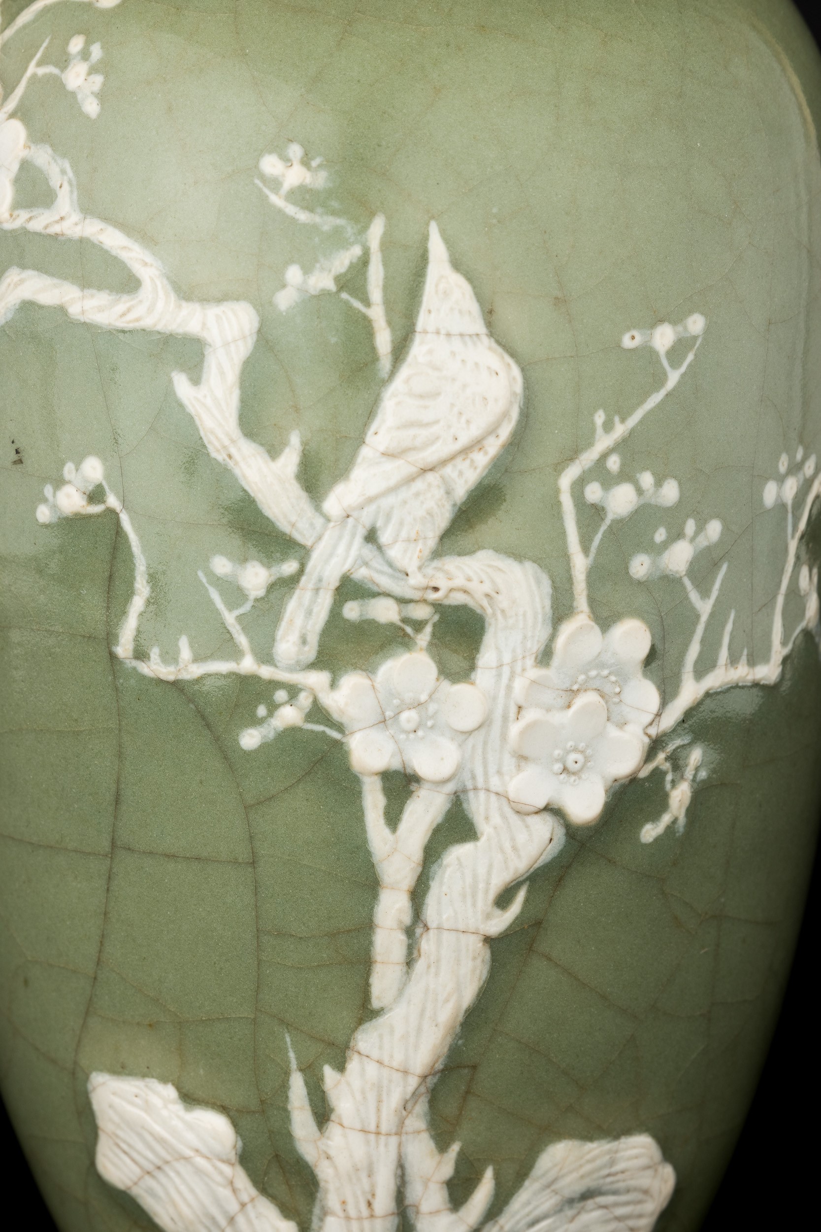 Vaso Guan e Celadon con decoro naturalistico a rilievo in porcellana bianca, Cina, XIX secolo